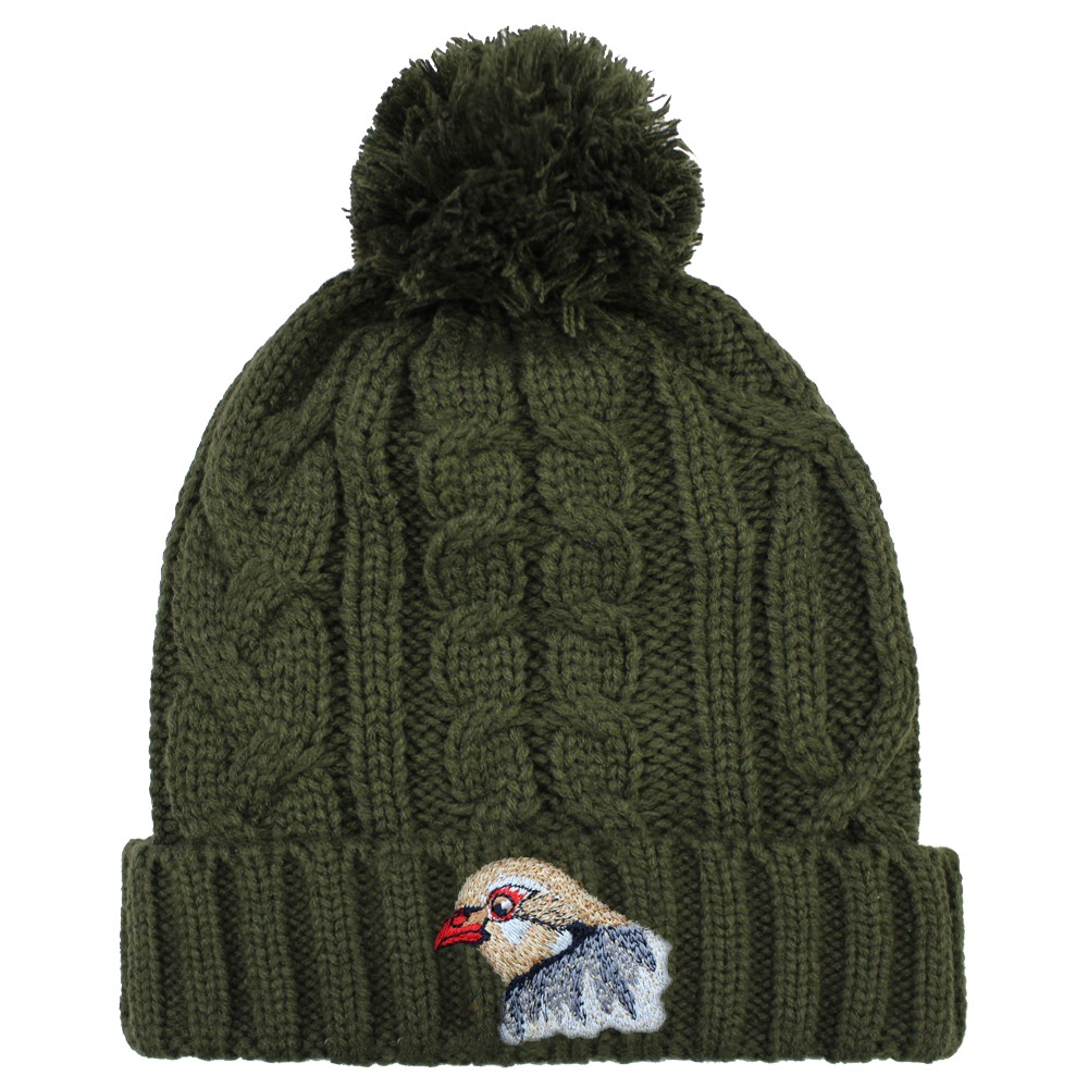This luxury unisex bobble hat is crafted in a soft fleece-lined khaki green cable knit, perfect for cold weather. Featuring a stylish embroidered red-legged partridge design, it’s ideal for hiking, outdoor adventures, or cozy days out. Stay warm and stylish in nature with this practical yet fashionable hat.