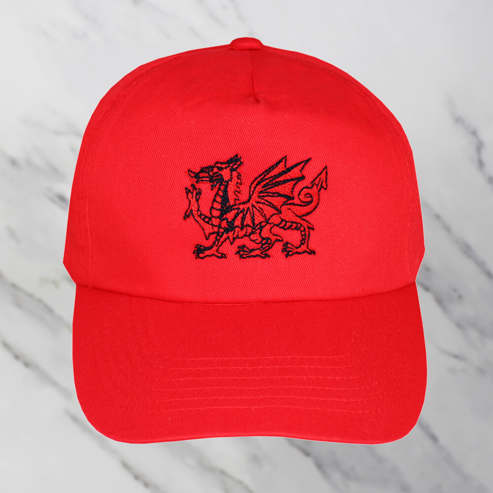 Our classic baseball cap makes the best Welsh gift! Keep cool this summer with our red, white, and black Welsh dragon embroidered baseball cap!