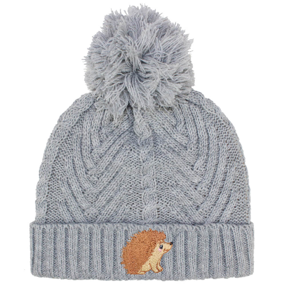 Embroidered Hedgehog Cable Bobble Hat (2-5 Years)