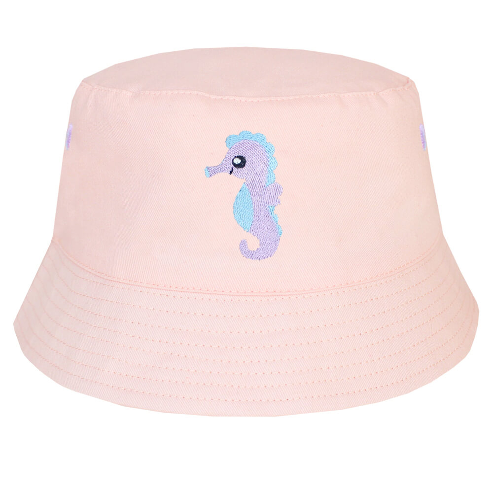 Keep them shaded from the sun in this fun bucket style hat. Choose from a sweet seahorse or starfish design beautifully embroidered – they look great against the gorgeous peach base colour of the hat! Available in two sizes. Perfect for summer holidays, sunny school days or fun in the garden!