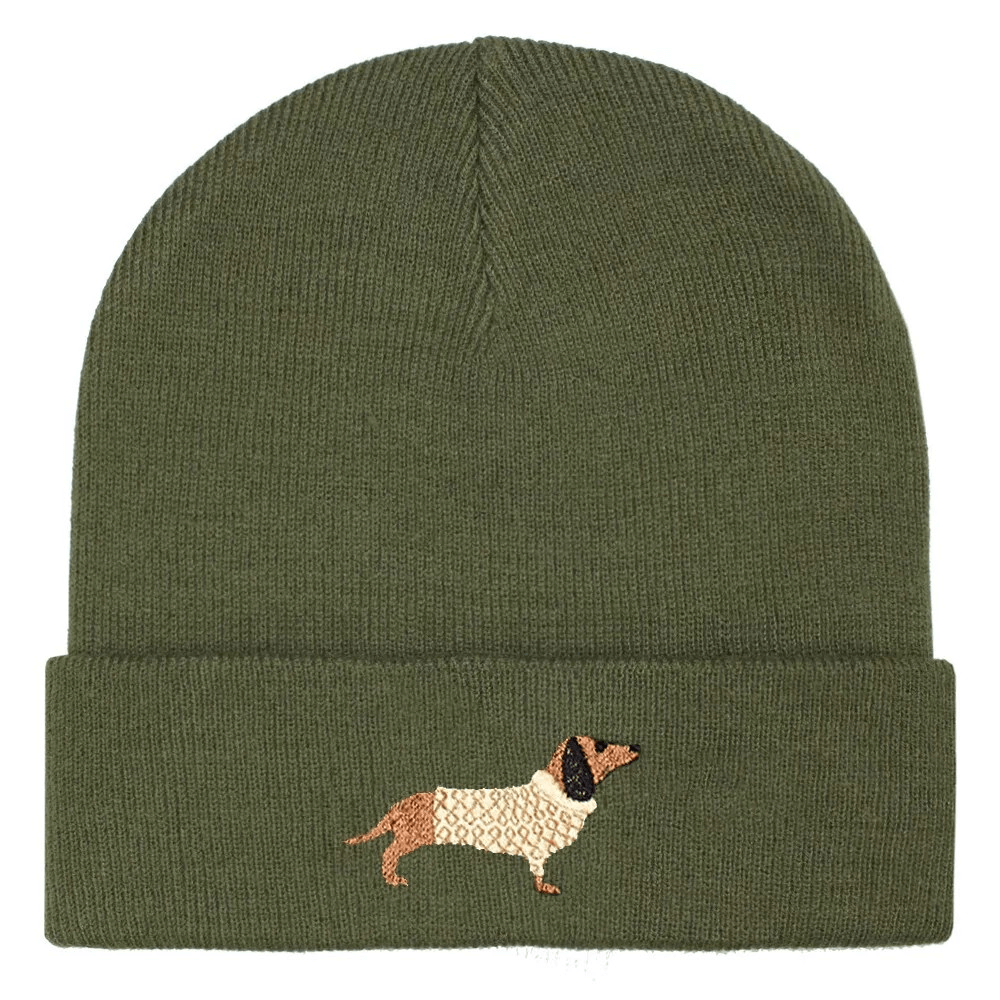 Dachshund Sausage Dog Embroidered Soft Knit Khaki Beanie Hat