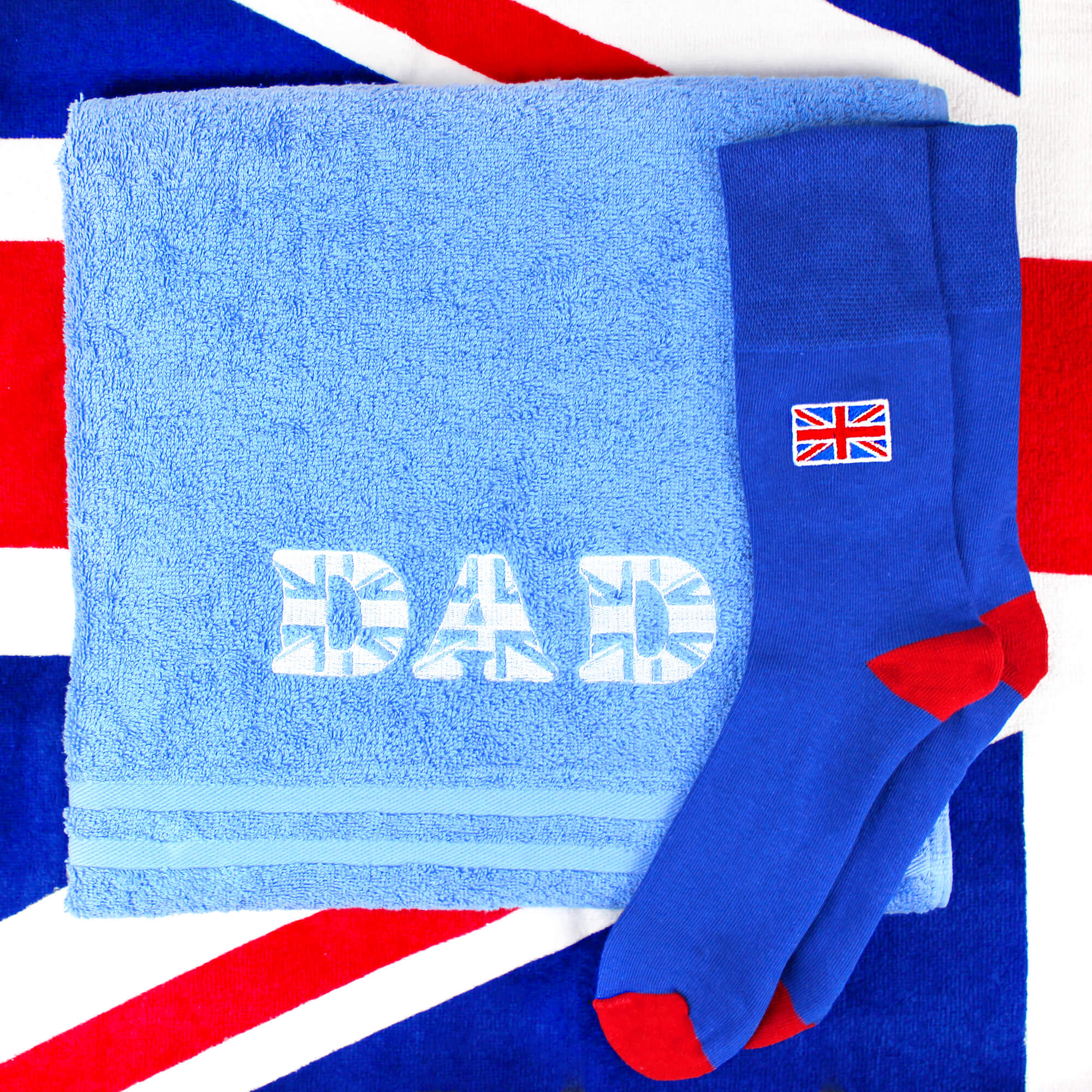 Dad Union Jack Great Britain Embroidered Bath Towel & Socks Set
