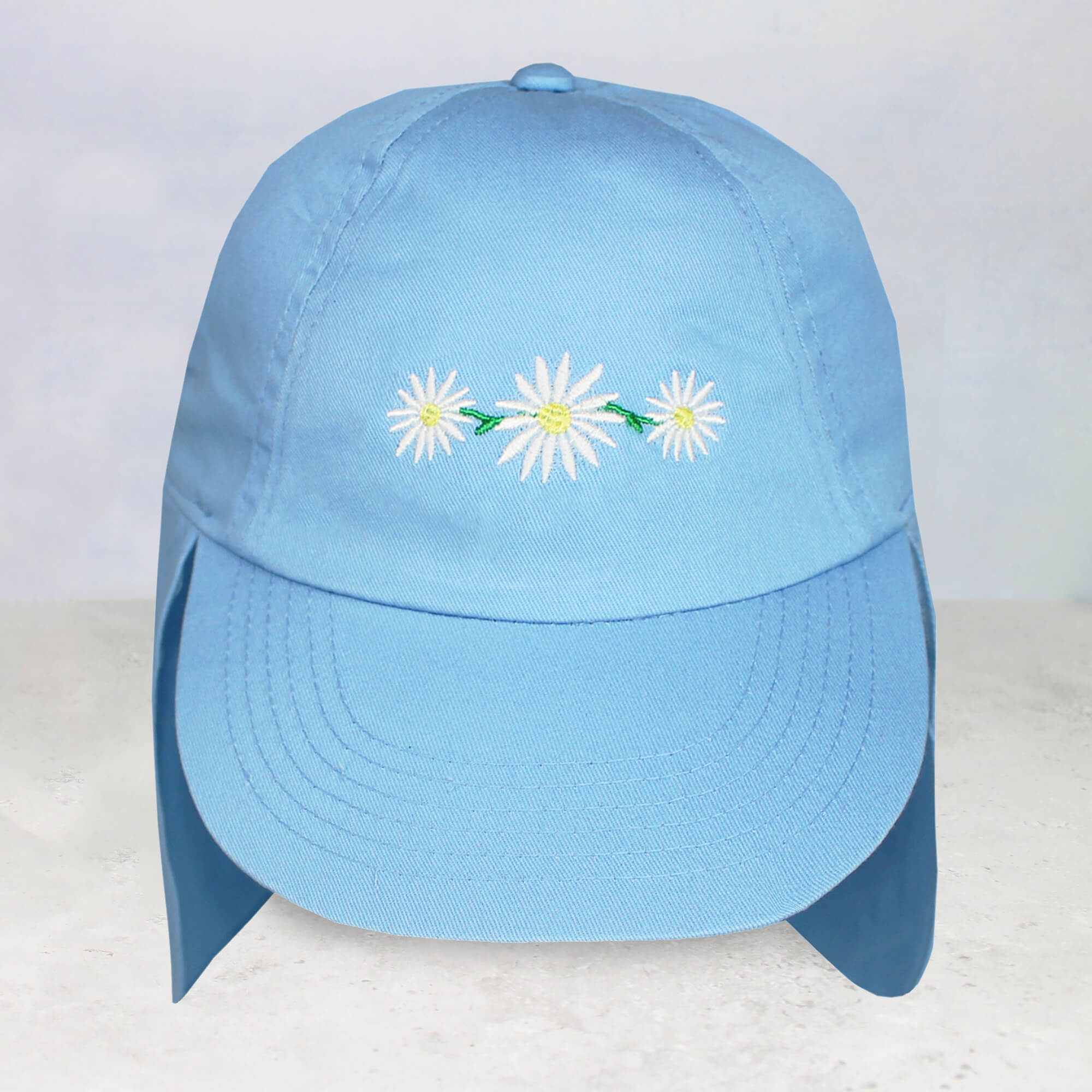Featuring daisy chain embroidery with ear and neck protection this is a perfect accessory for back to school or your summer holidays!