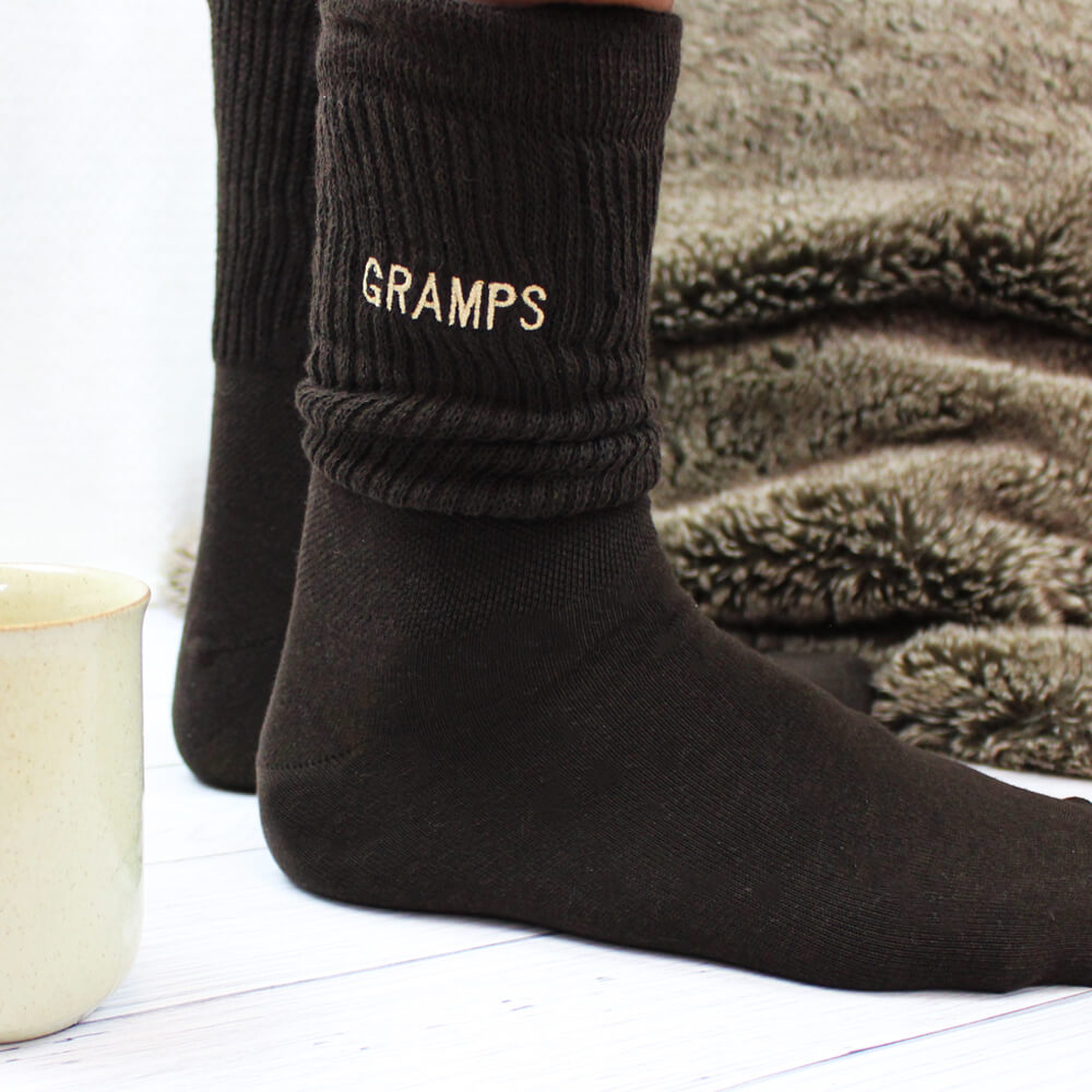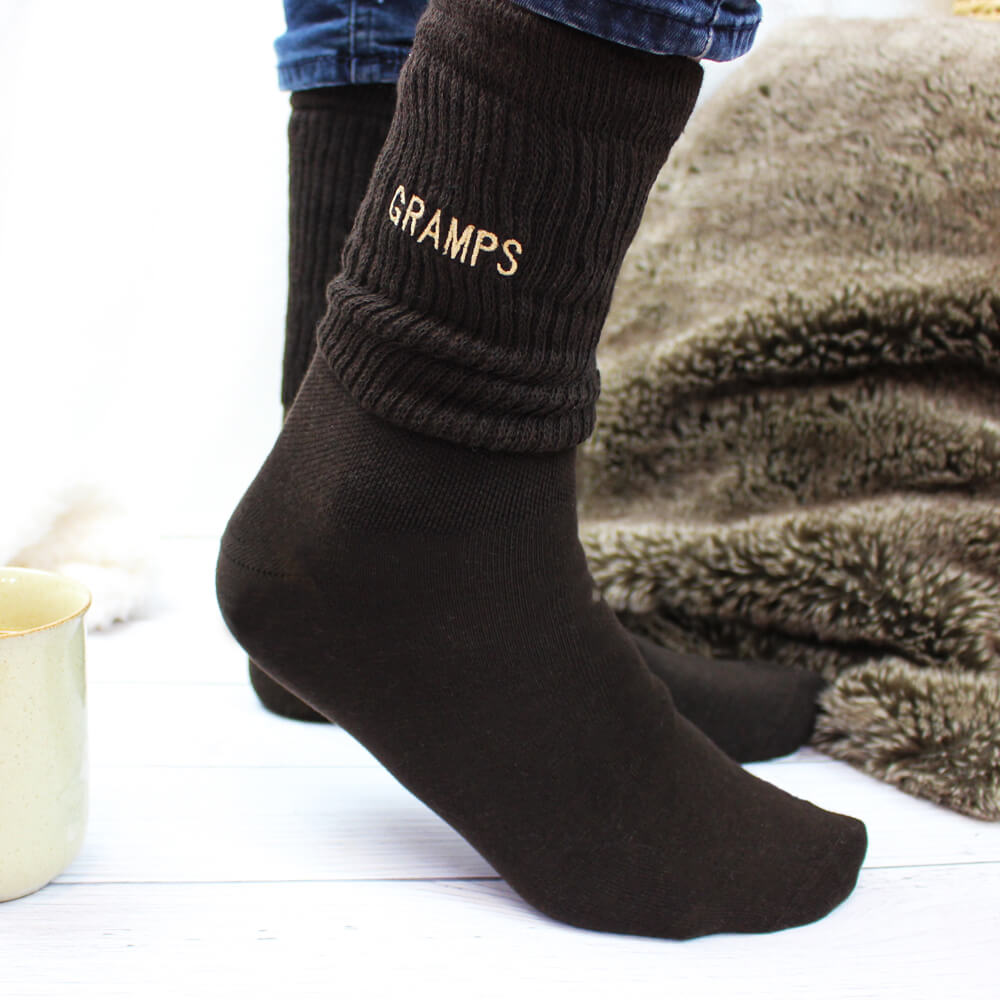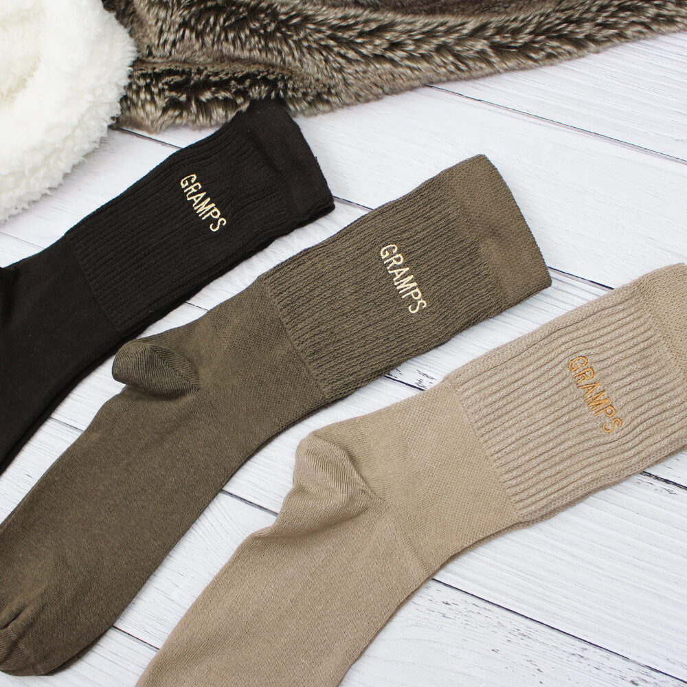 An ideal birthday gift, treat your grandad to these super soft comfort fit diabetic socks with an embroidered ‘Gramps’ in dark chocolate, mid-brown and sand!