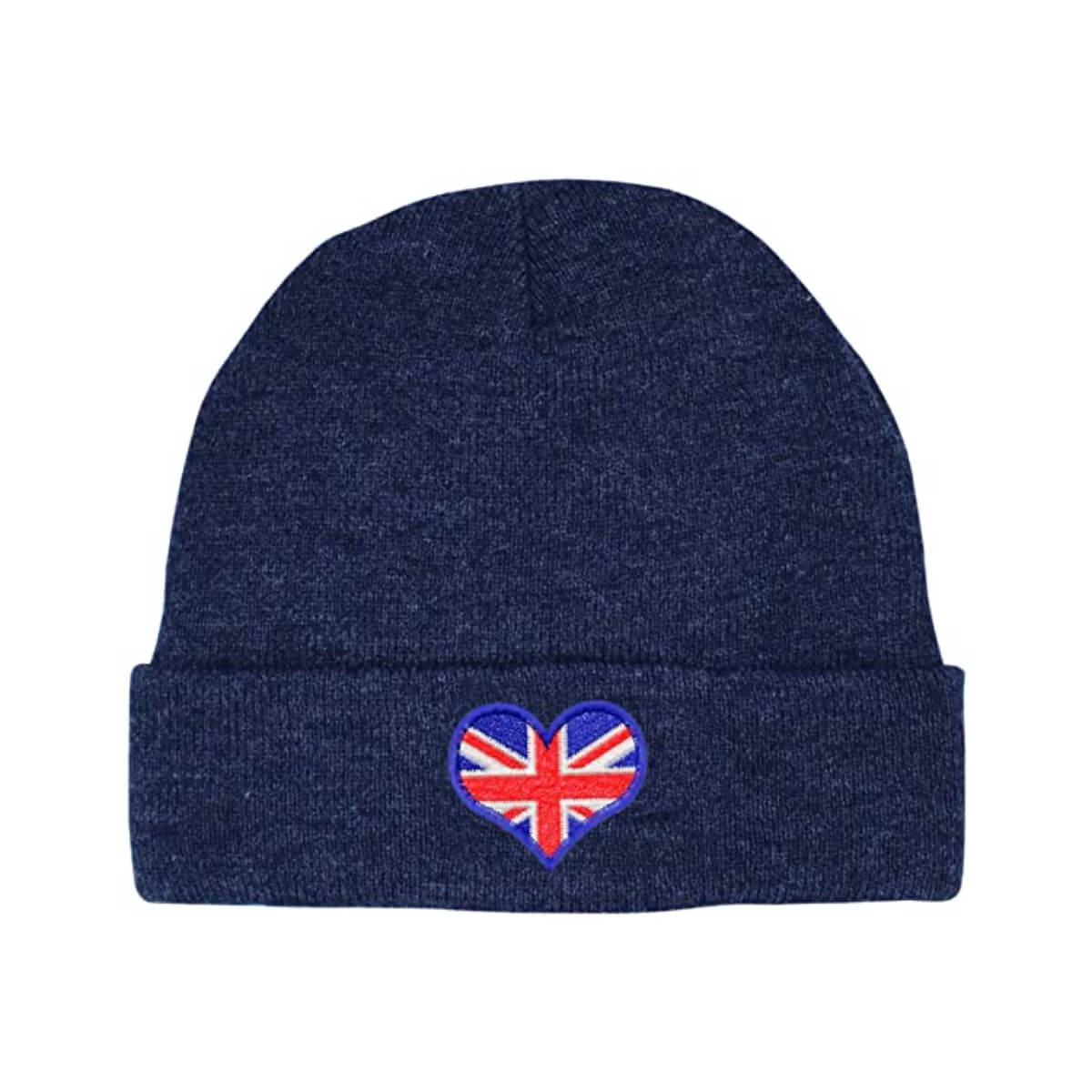 Keep cosy in our thermal, fleece lined navy beanie hat, featuring a professionally embroidered Union Jack flag in a heart shaped design. Perfect for the chilly winter months, this hat has a super soft feel and durable stretch for a comfortable all day fit. Finished off with a turn up brim.