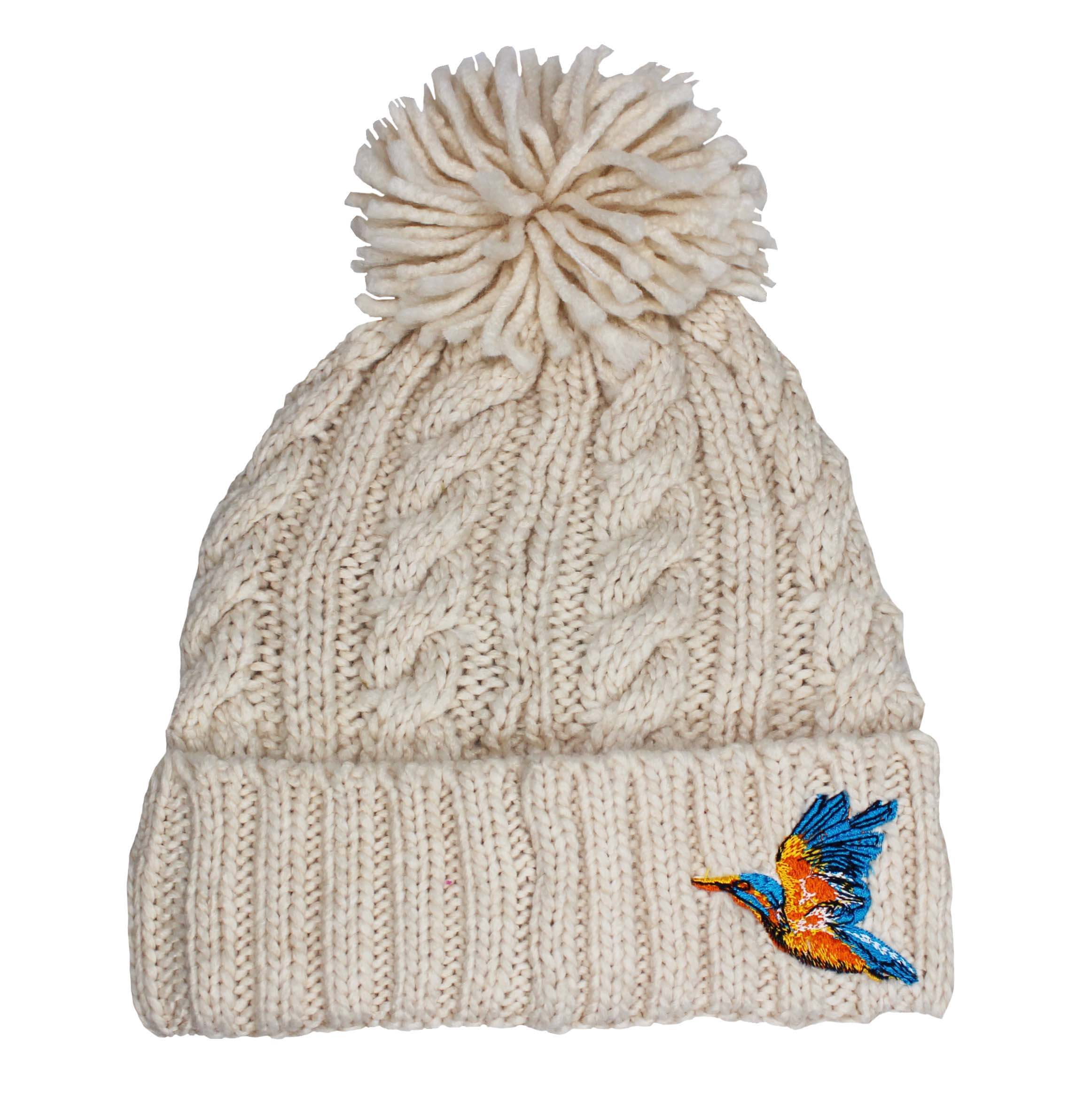 Stay warm in style with this women’s one-size chunky cable knit bobble hat, designed for cosy winter warmth, featuring a super soft, comfortable feel and a beautifully embroidered kingfisher, making it a perfect cold-weather accessory and thoughtful gift for her.