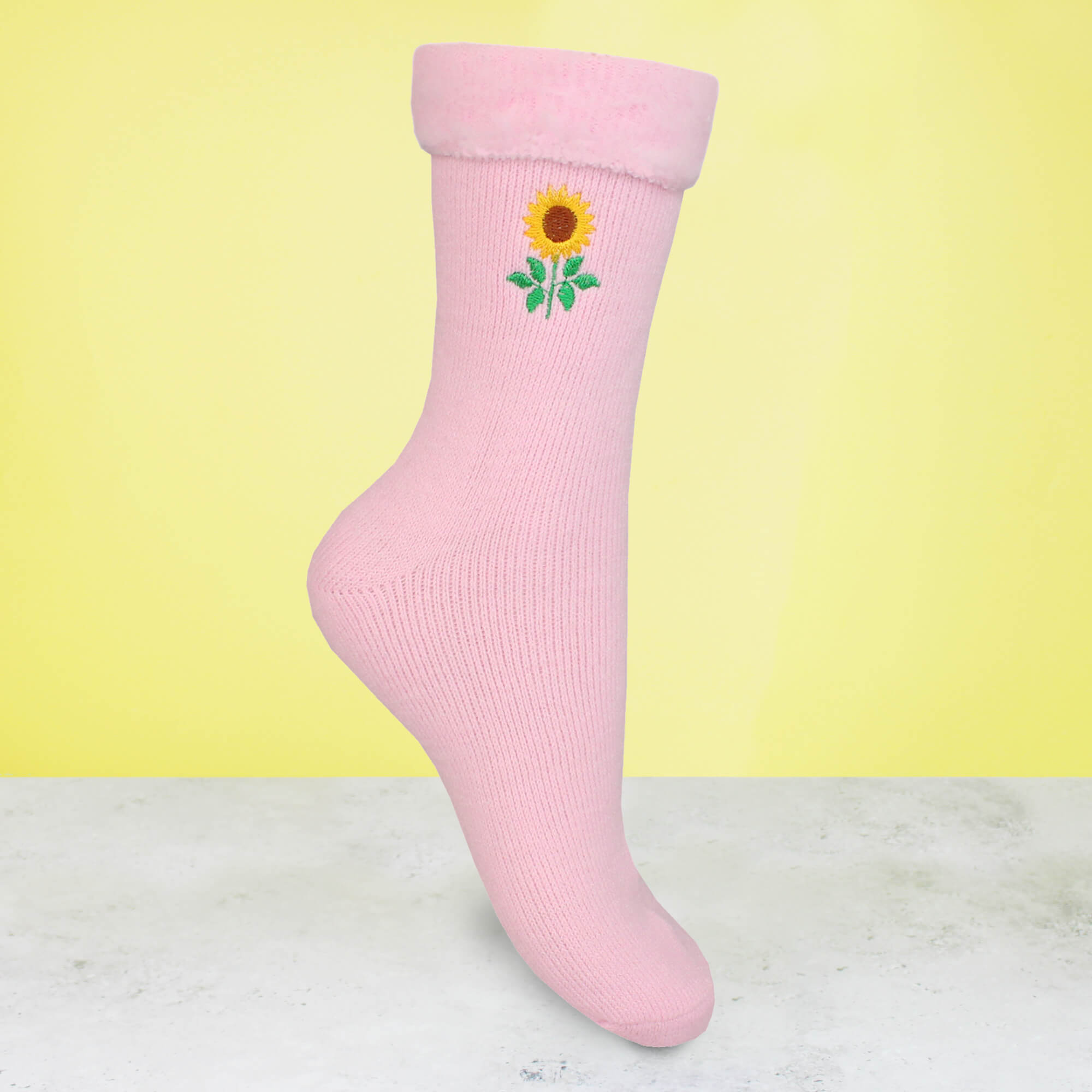 Keep cosy with these super soft brushed bed socks featuring an embroidered sunflower. A perfect gift!