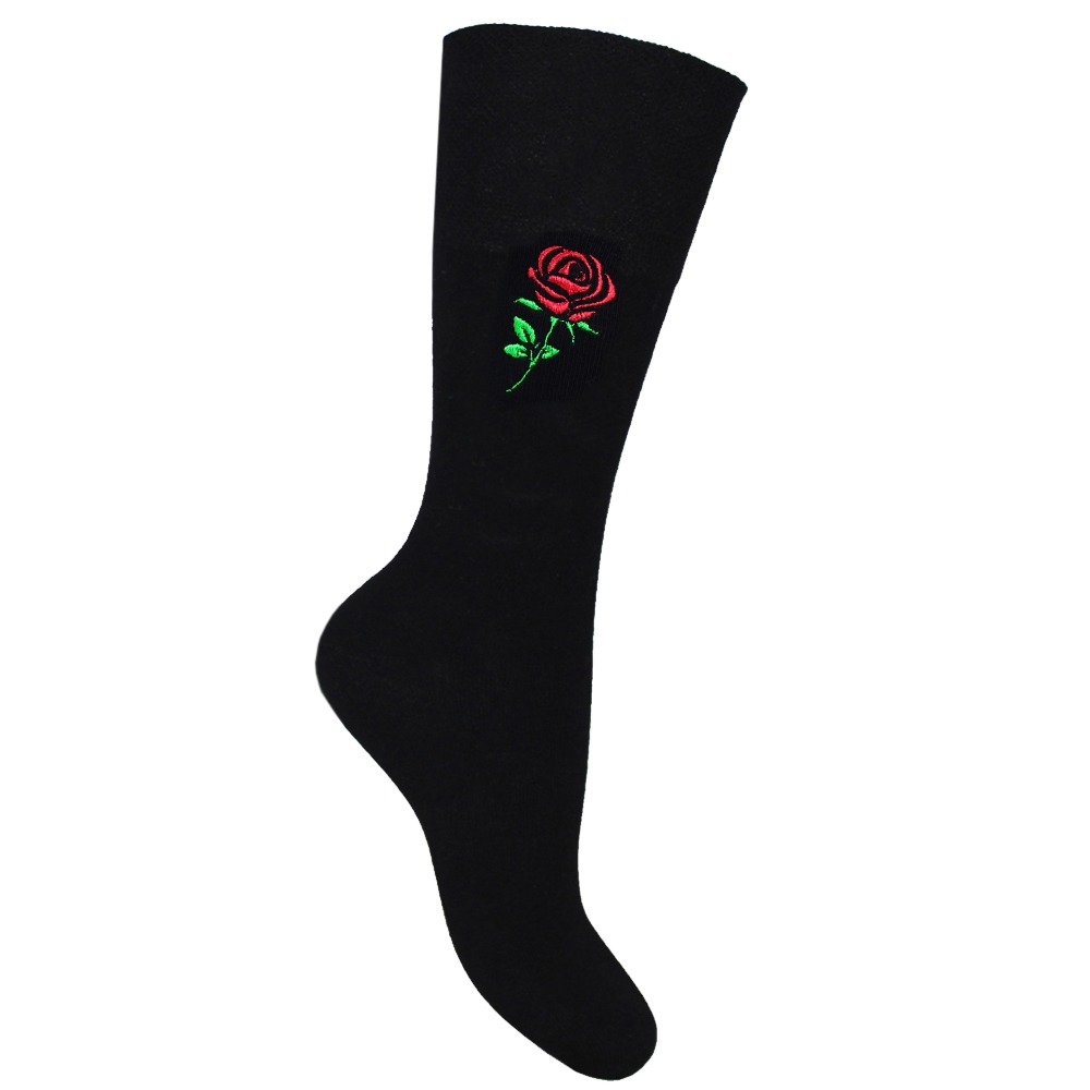 These super soft cotton rich black socks feature a stylish high quality embroidery design of a vintage English Rugby Rose.
