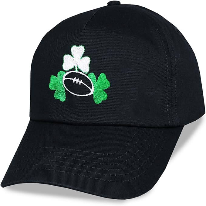 Support Ireland with our Men’s Irish Rugby Shamrocks Baseball Cap Hat. Celebrate the spirit of Ireland and rugby with our Irish Shamrock Rugby Design Embroidered Black Baseball Cap! This cap seamlessly blends the iconic Irish shamrock with a rugby theme. Crafted for comfort and durability, it’s perfect for wearing during matches or as an everyday accessory. Whether you’re a die-hard fan or simply love Ireland’s heritage, this cap is a must-have. Show your allegiance to Irish rugby and sport a style that’s timeless! One Size Baseball Cap. Fully Adjustable Fastening for Ideal Fit with Stiff Front Peak for Sun Protection. High Quality Embroidery. Light and Breathable for Comfort in the Sun. 100% Cotton.