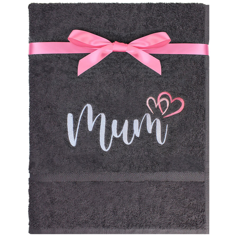 The towel features a lovely heart-themed Mum embroidery, with intricate details that make it an extra special gift. The high-quality, professional embroidery ensures the design will last, adding a personal touch to her bathroom essentials.