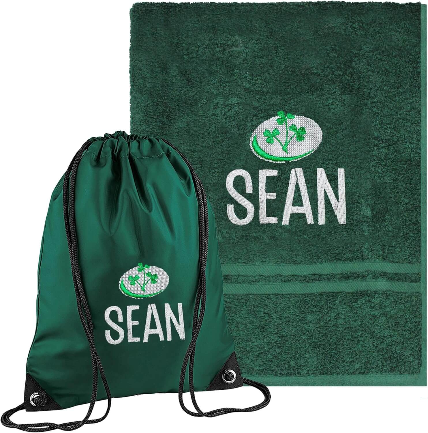 This Ireland Rugby Towel & Bag Set includes a super soft and absorbent 500gsm towel (125cm x 75cm approx.) with professional personalised embroidery and a matching drawstring bag (45cm x 33cm), making it perfect for school, sports, PE, swimming, or as an ideal rugby gift!
