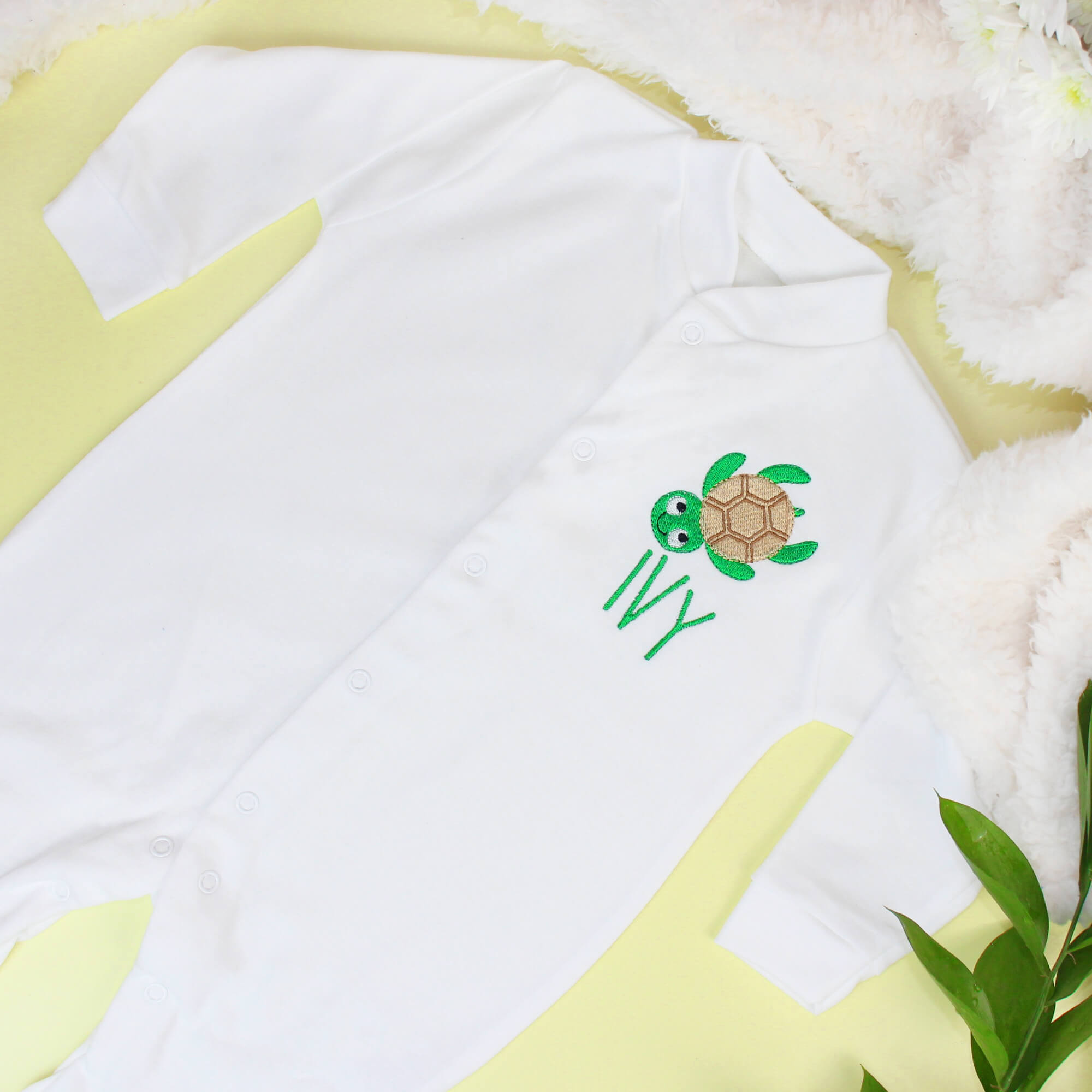 Be the first to review “Personalised Baby Turtle White Sleepsuit”