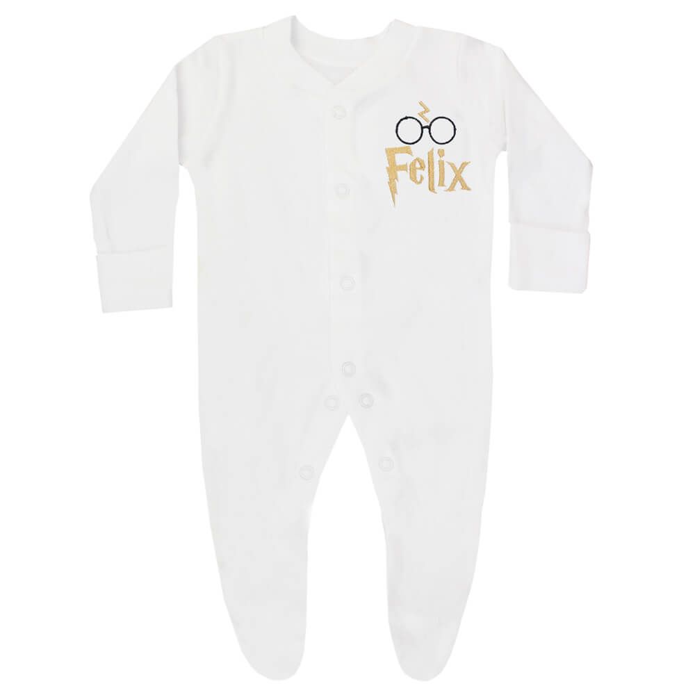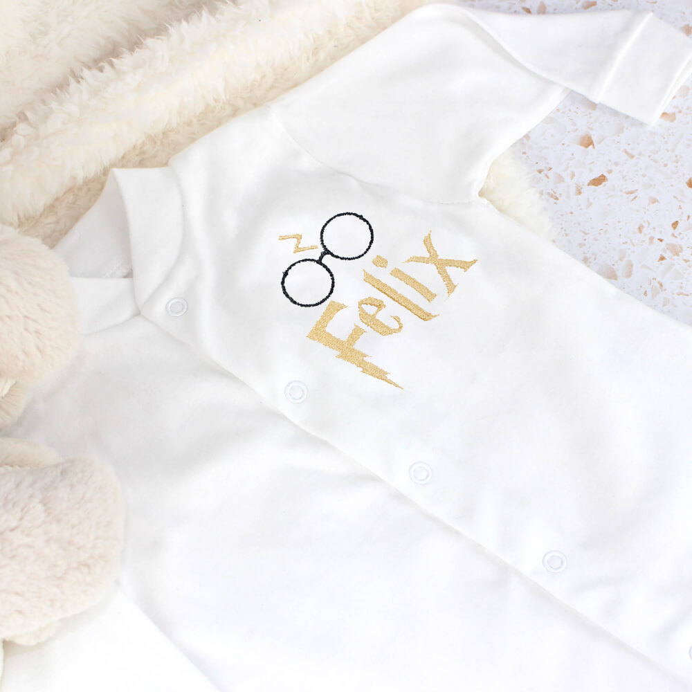 The perfect new baby gift for wizard fans and their little wizards in training! Super soft 100% cotton provides cosiness & comfort while multi-popper fastening allows for easy changing. With a cute glasses design and space to add personalisation, both embroidered, this is a fun & practical gift or addition to your own baby’s wardrobe!