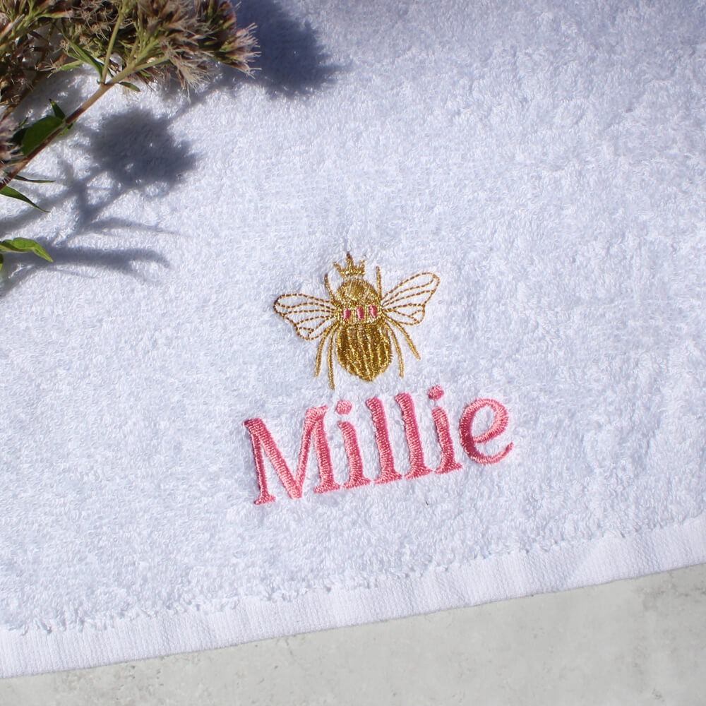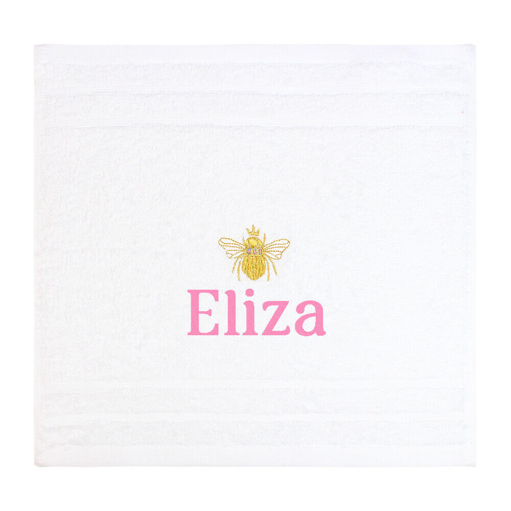 This Personalised Golden Bee White Cotton Face Cloth Flannel makes an ideal gift for jet setters or adds style to your bathroom! Deluxe Super Soft Natural Cotton with High-Quality Personalised Embroidery available in 2 colours.