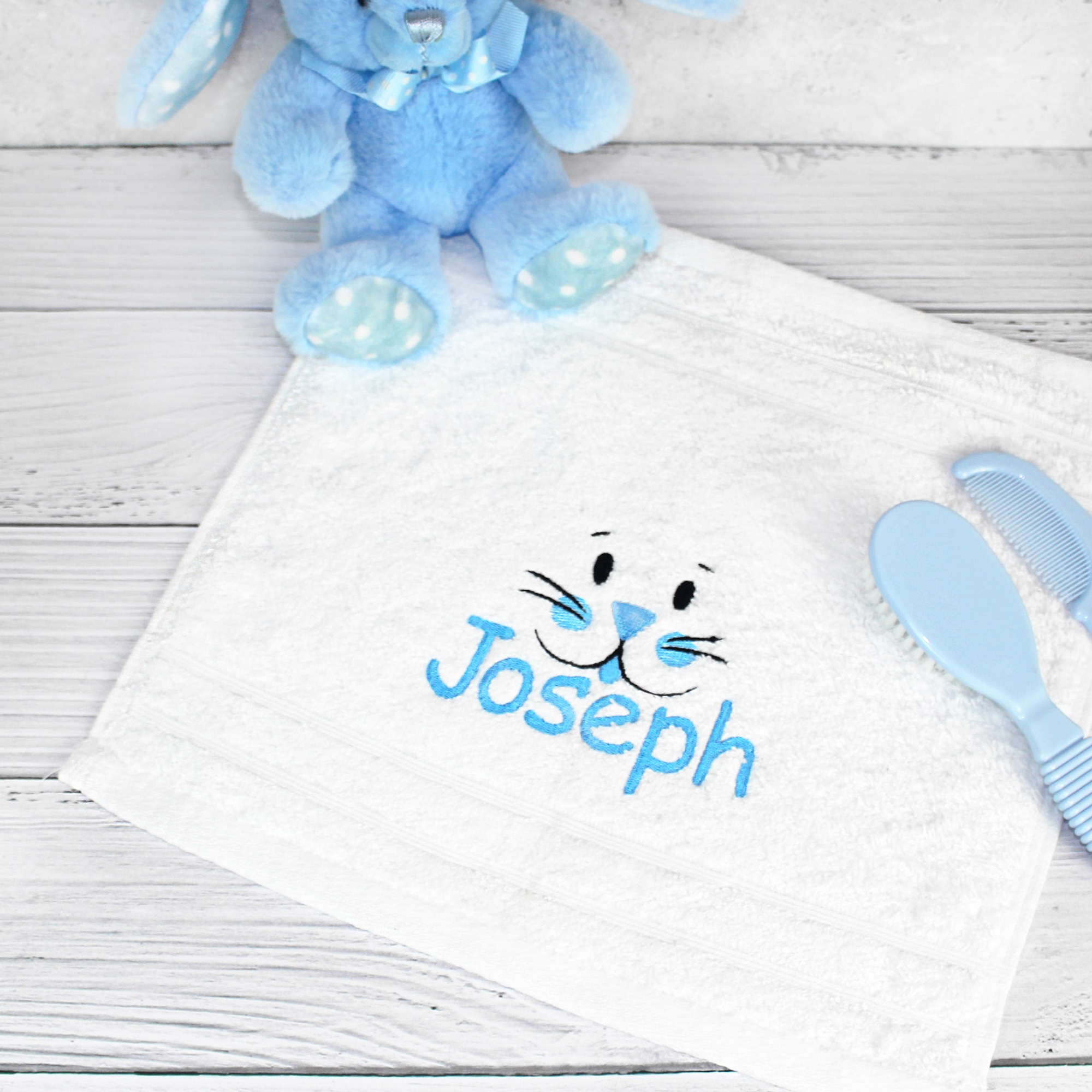 Personalised Blue Bunny Rabbit Face Cloth Flannel