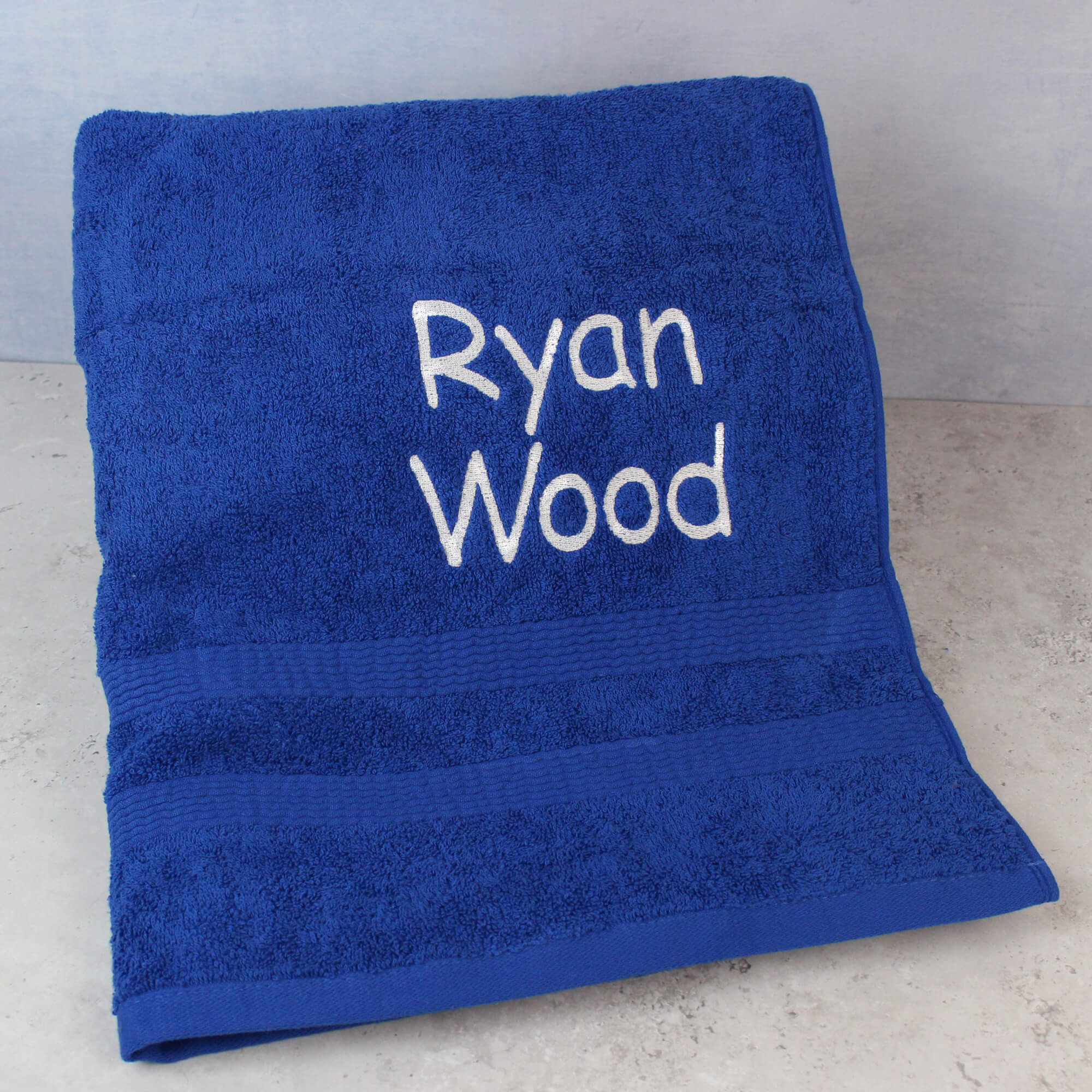 In a deep royal blue shade, this personalised embroidered swimming towel is perfect for the beach, the pool, school or PE!