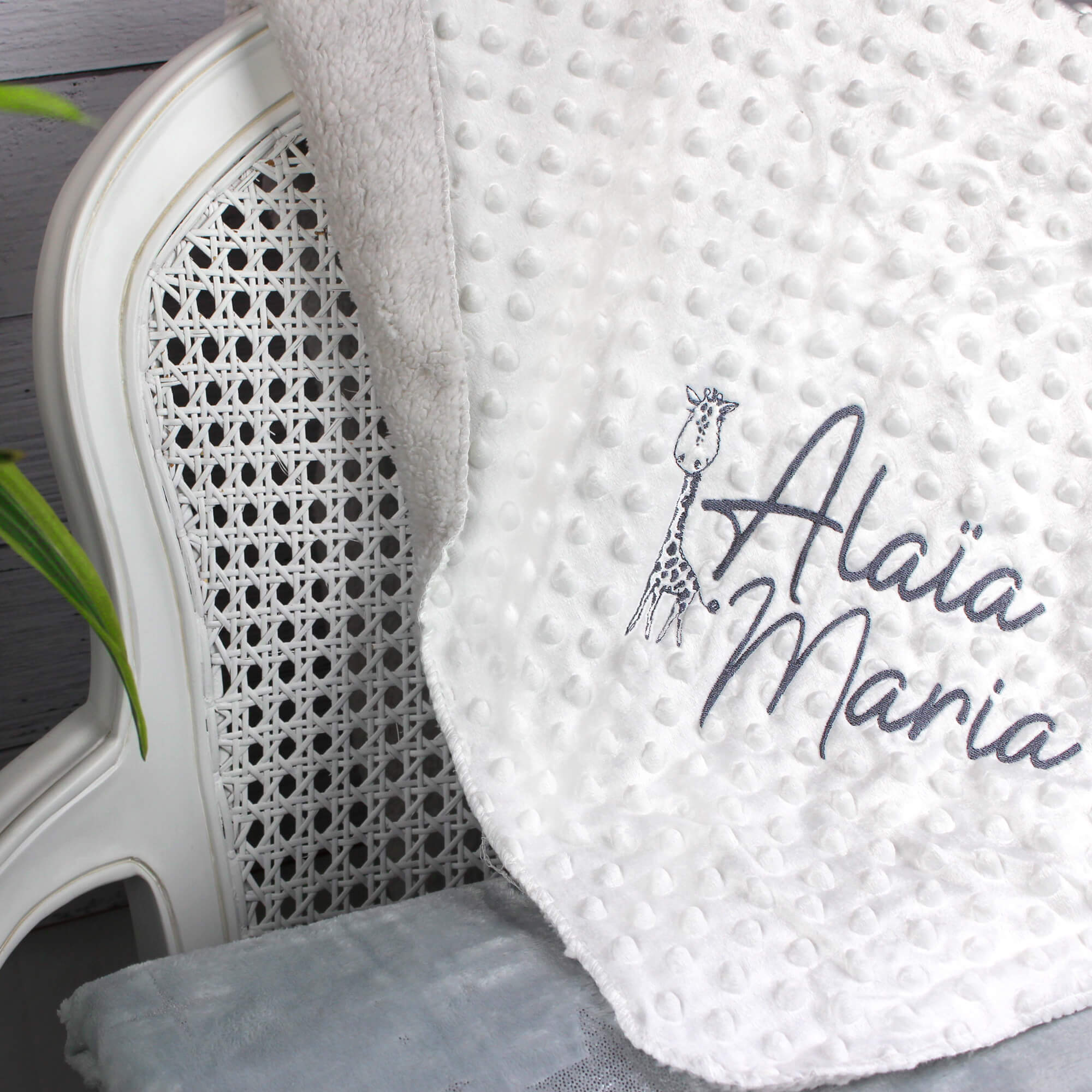 Personalised Cute Giraffe White Bubble Baby Blanket