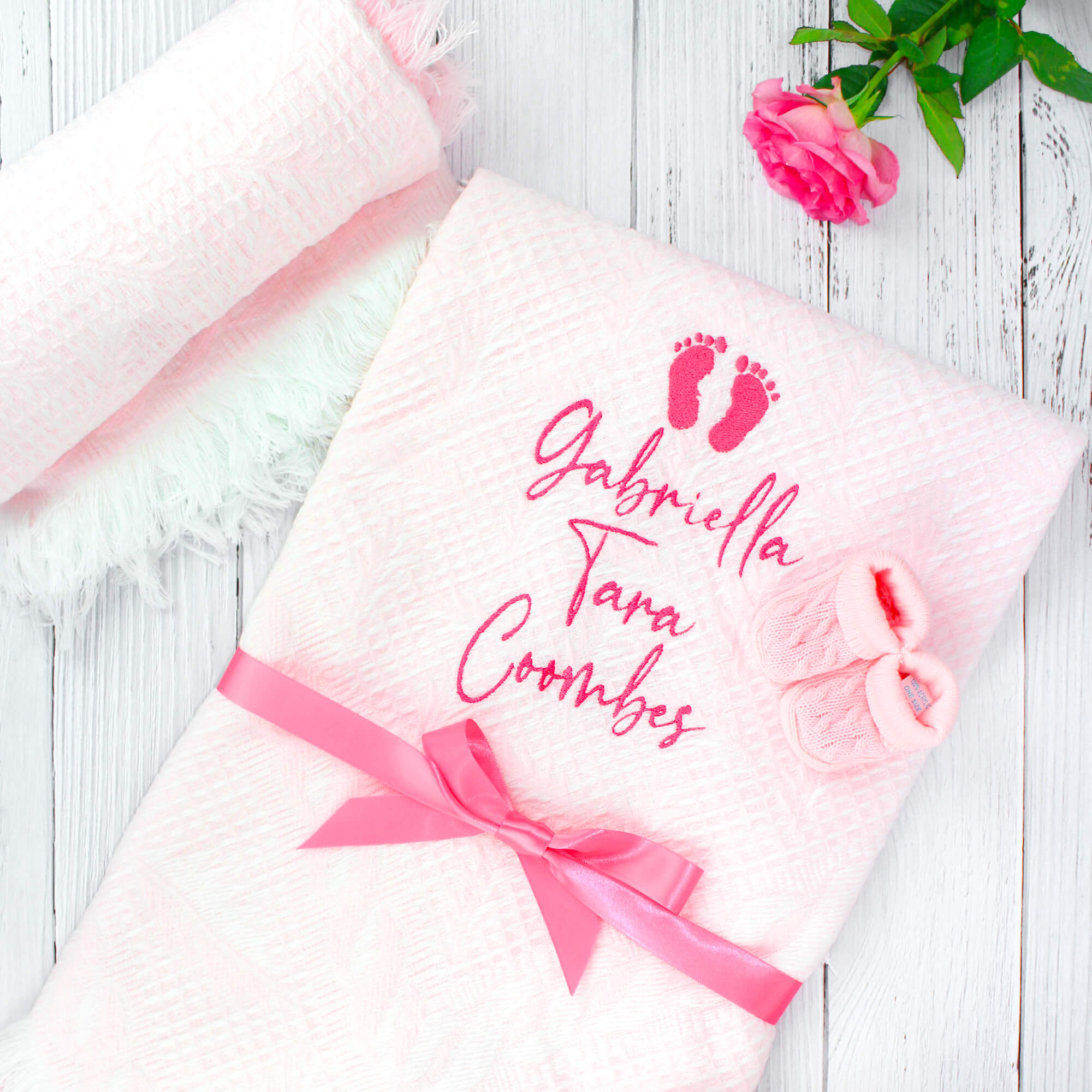 Personalised Gift Message Pink Baby Shawl with Cable Knit Booties