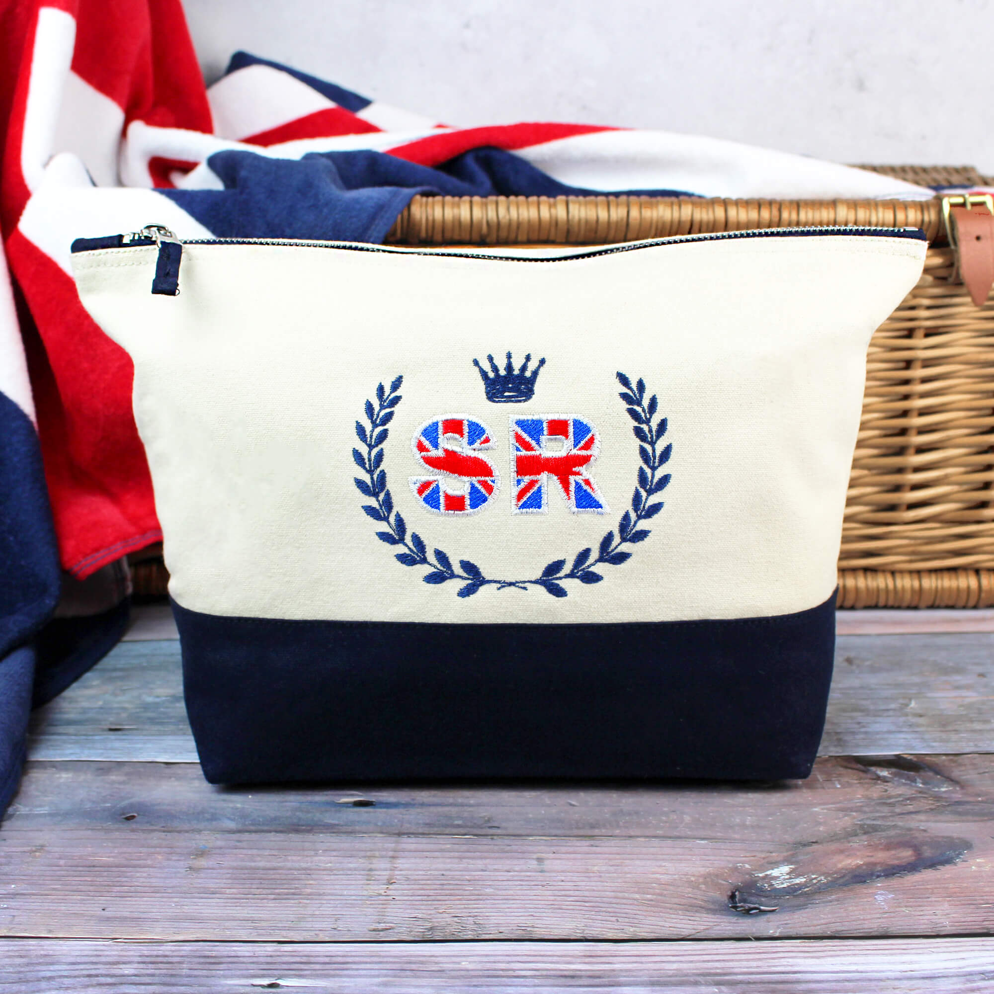 Personalised Great Britain crest team GB embroidered travel wash bag.