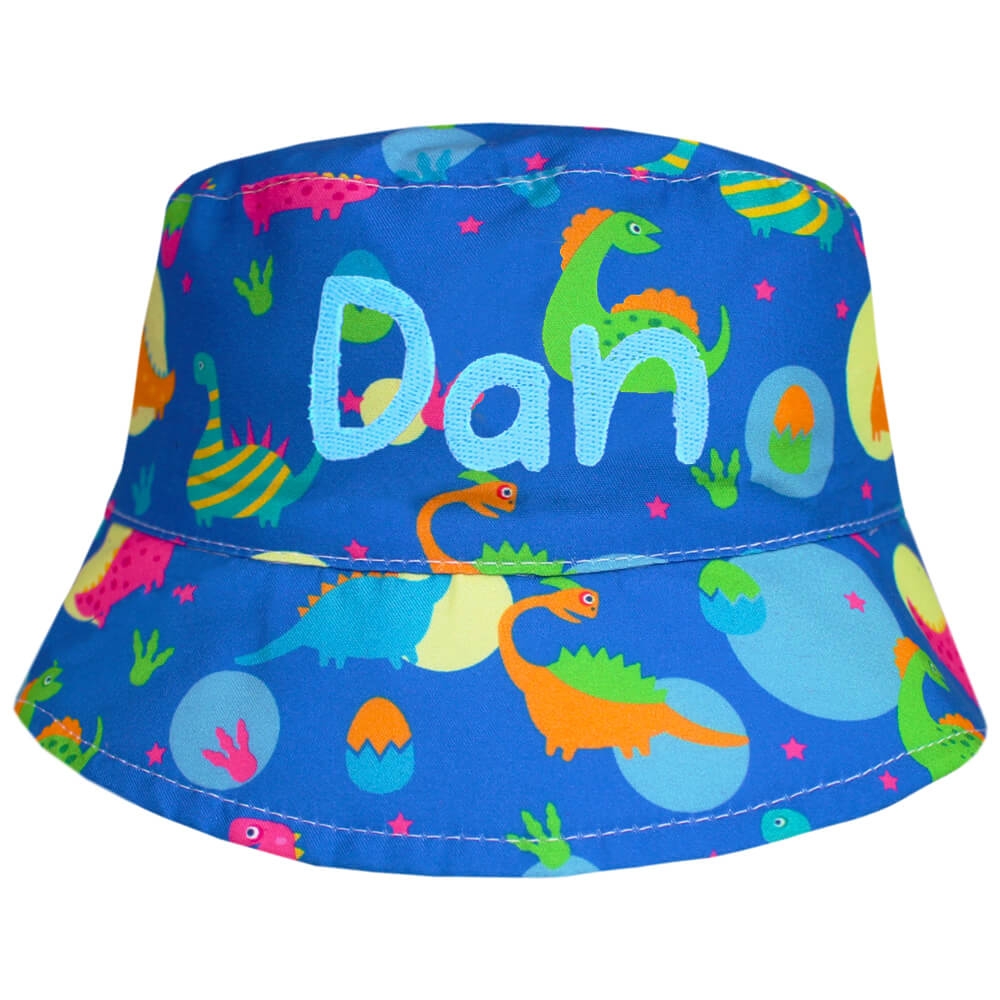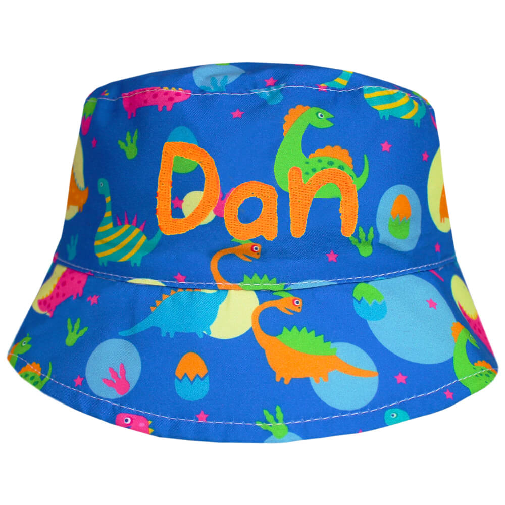 Personalised Embroidered Kids Dinosaur Neon Bucket Sun Hat