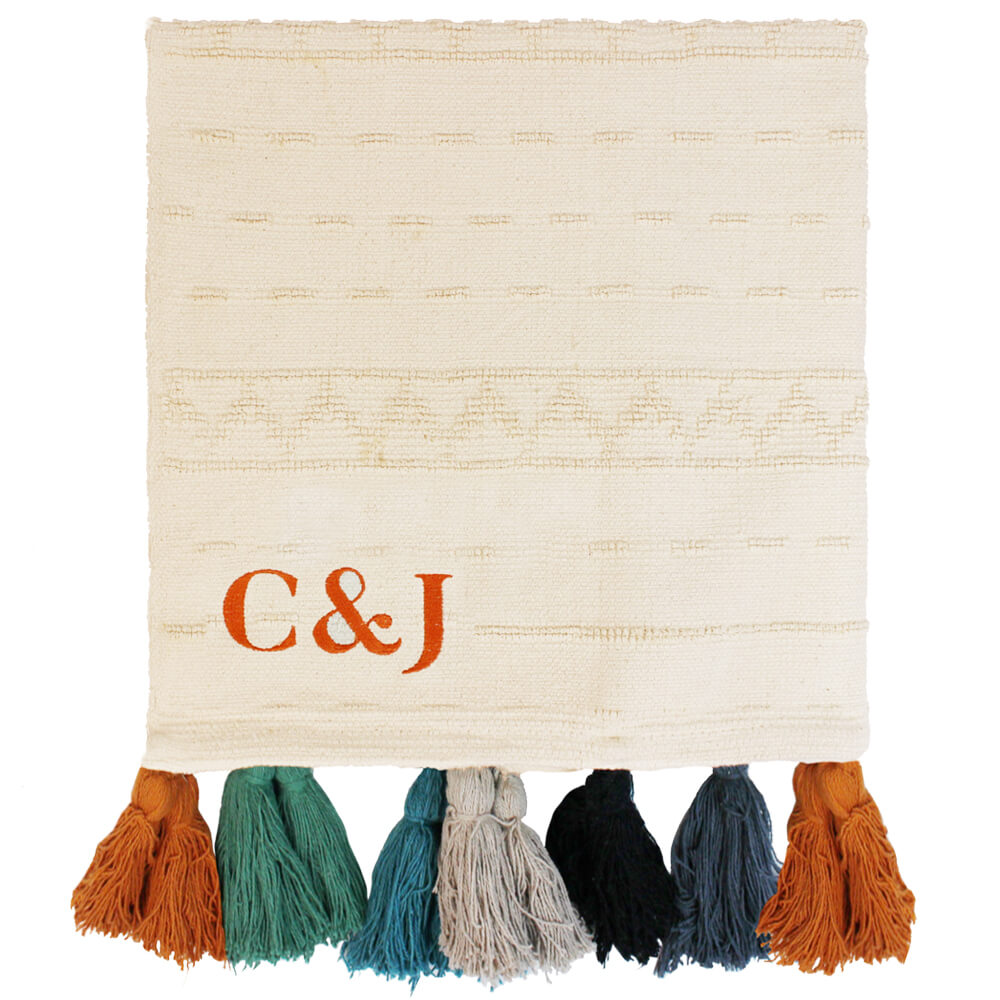 This Embroidered Personalised Initials Textured Cotton Throw adds a Perfectly Personalised touch to any room. The Neutral contemporary cotton throw is a generous size to cover furniture or add style to your living area! Every Home needs a Throw with colourful tassles to add a splash of colour! It makes a extra special birthday or Christmas gift!