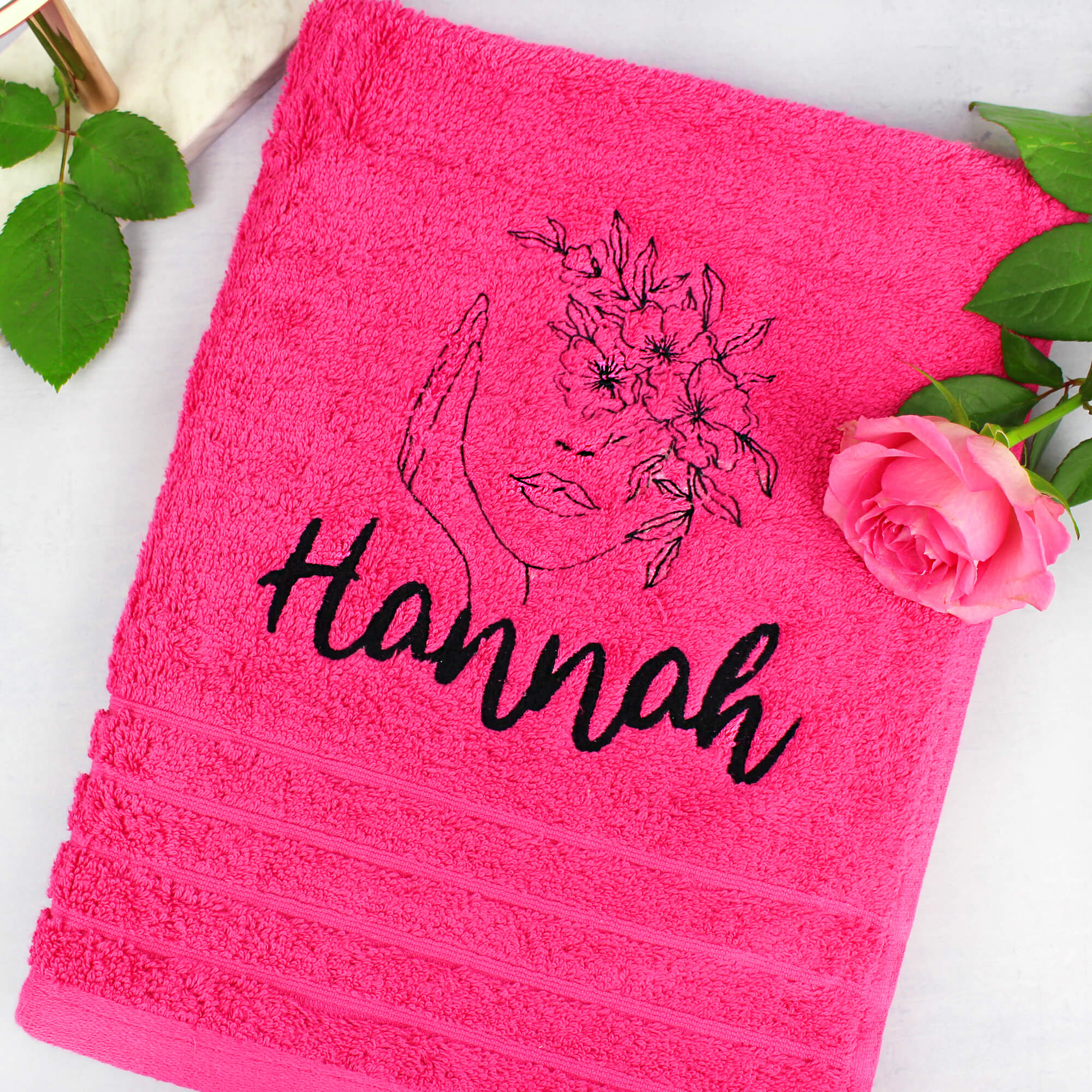 Personalised Minimalist Floral Line Art Pink Pamper Towel