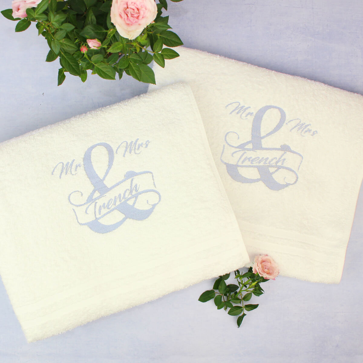 Embroidered in silver onto 100% soft cotton bath towels, this towel gift set is a luxurious and sophisticated wedding gift for a new couple!