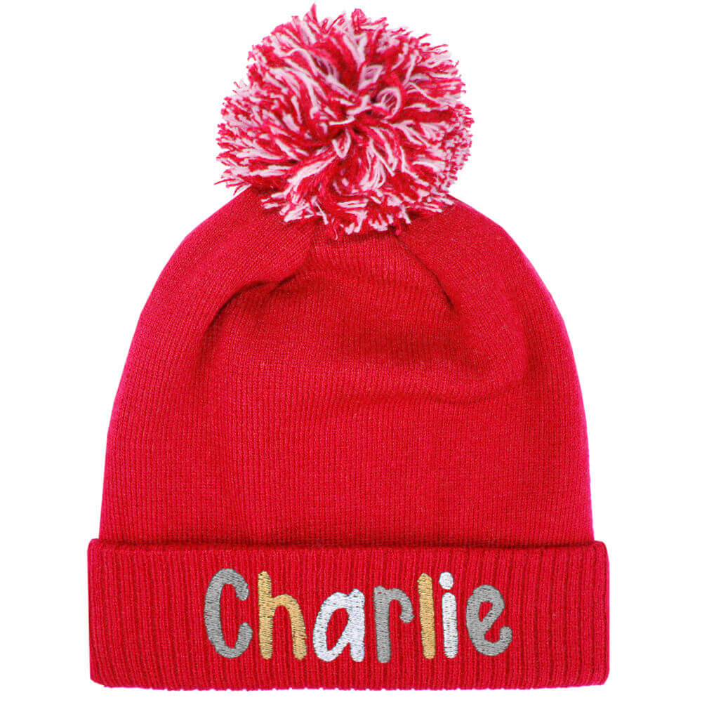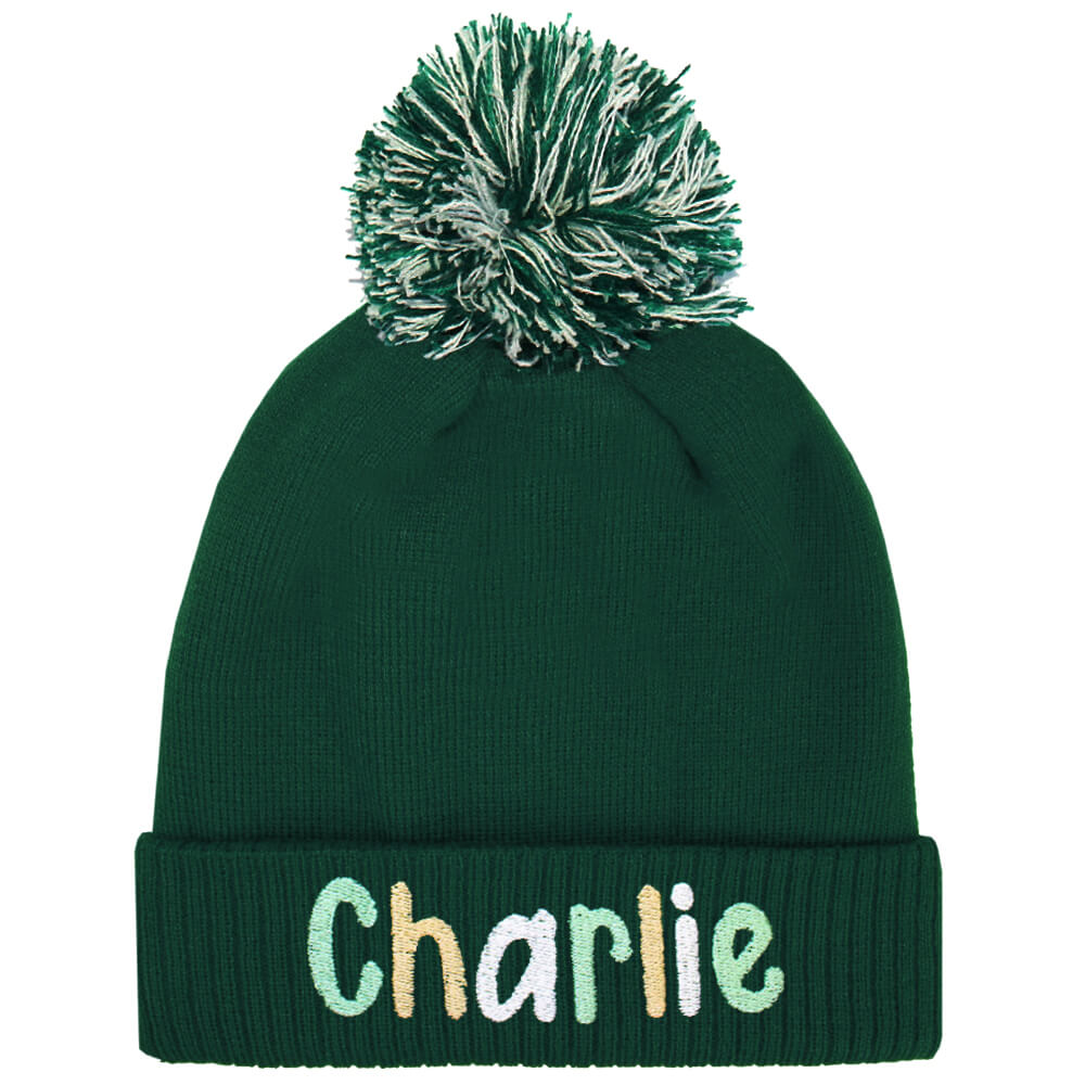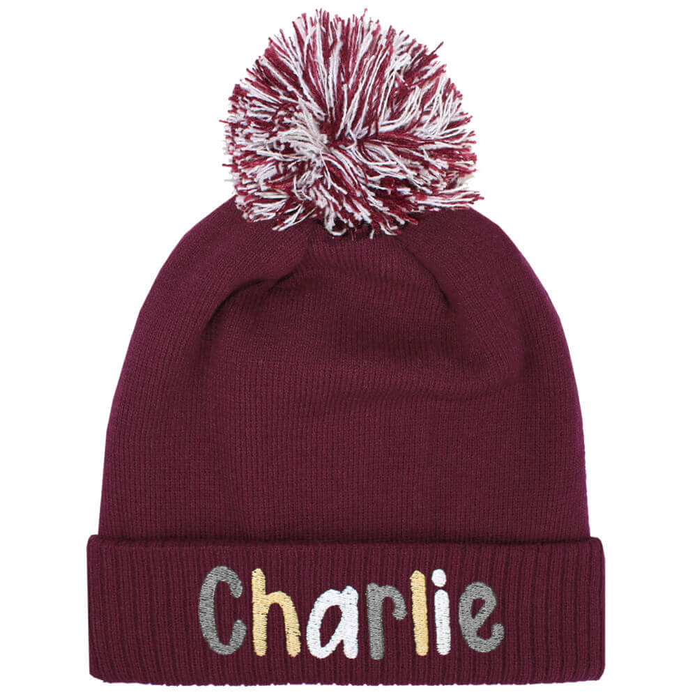 Keep your child warm and cosy with this personalised embroidered school bobble hat, featuring their name in multi-colour stitching. Perfect for chilly days, it’s a fun and practical addition to any school uniform!