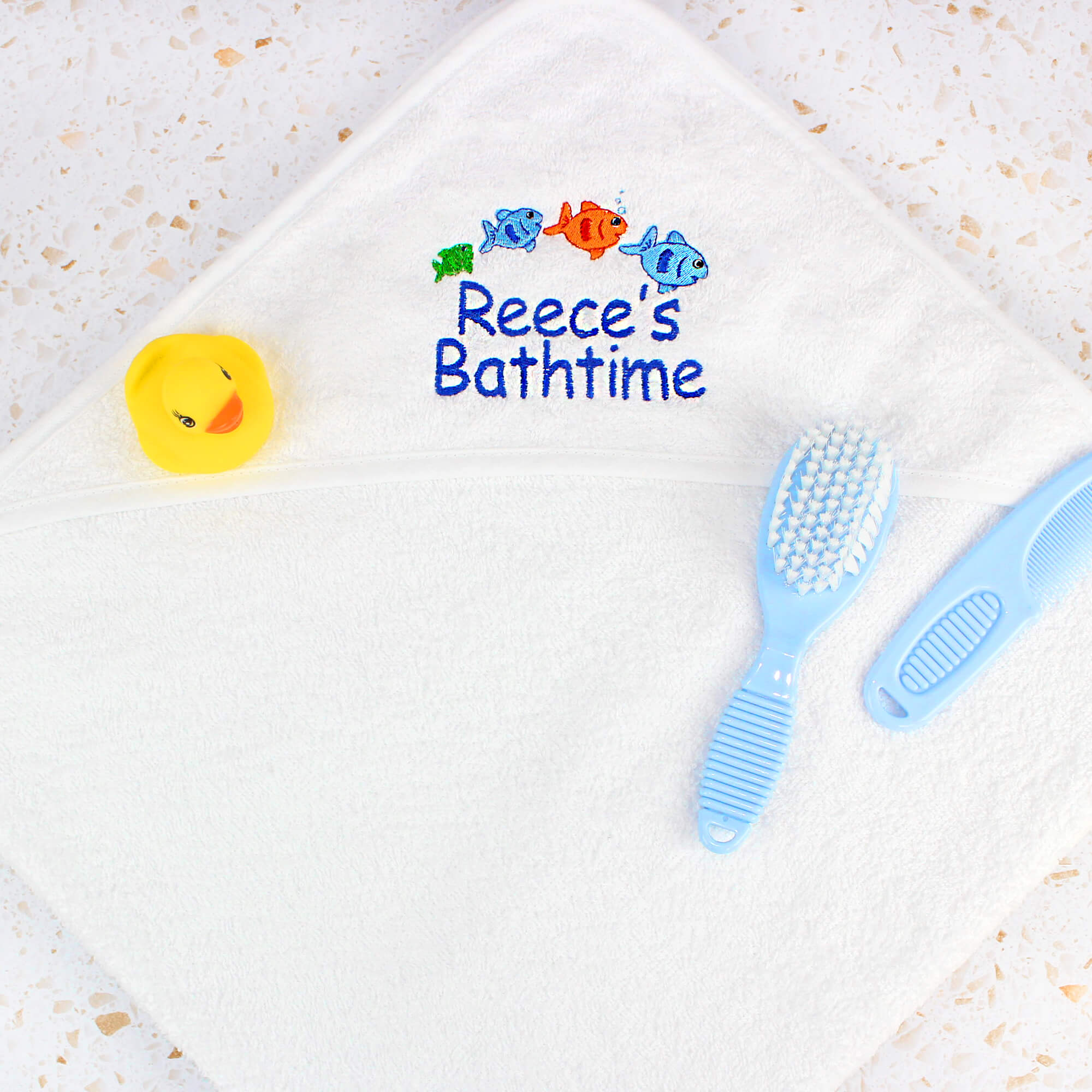 Personalised Bath Time Fishes Super Soft Hooded Towel