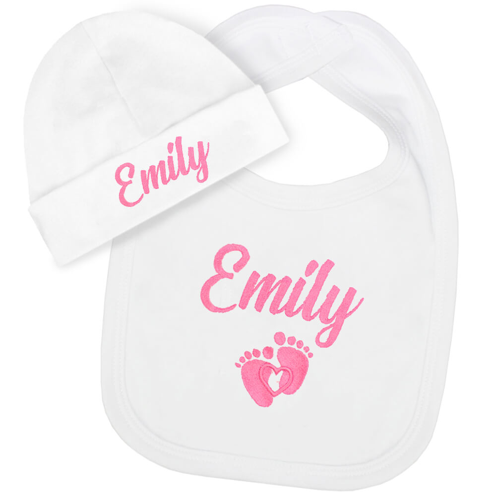 Be the first to review “Personalised Embroidered Footprint Baby Bib & Hat”