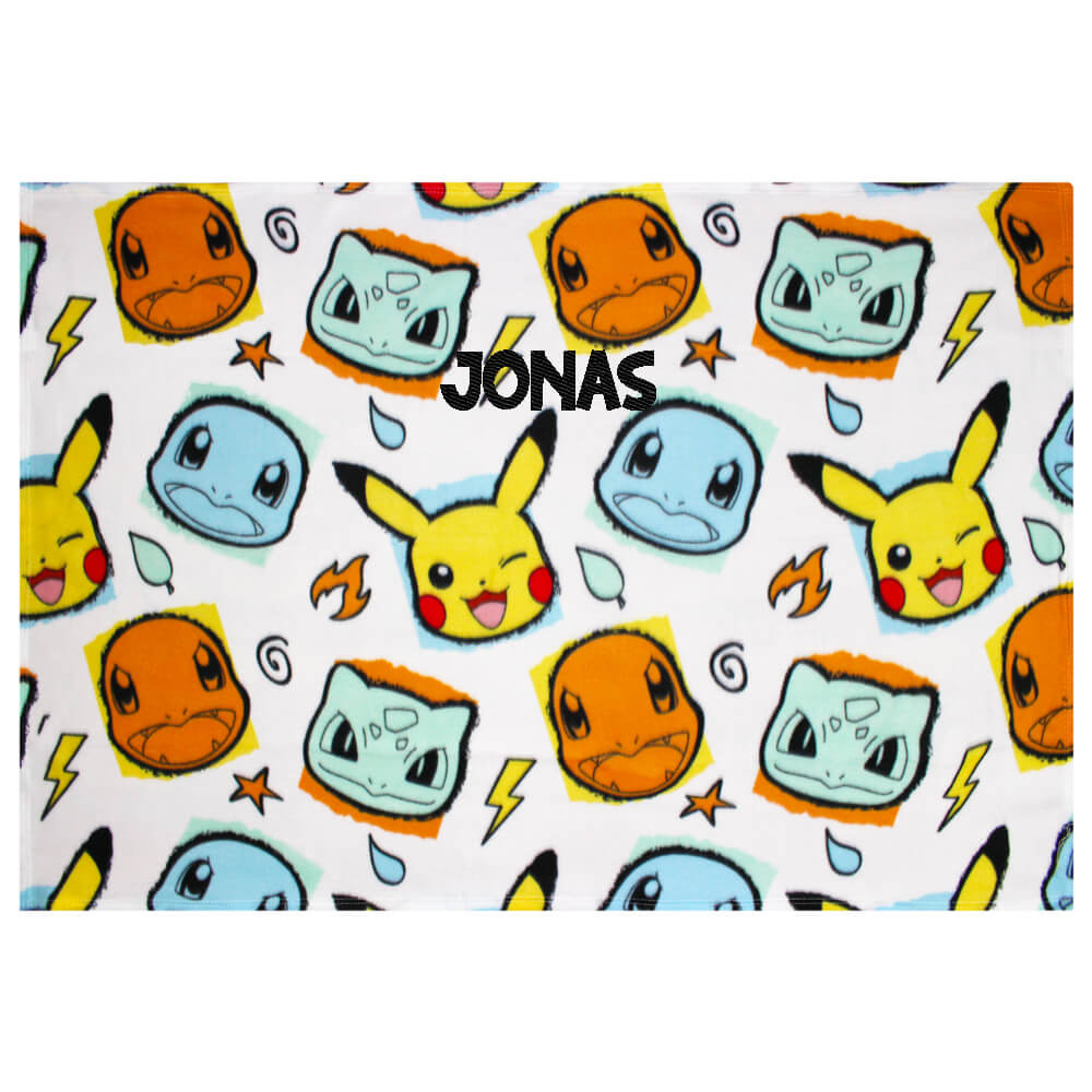 This Pokémon blanket makes a fantastic addition to any Pokémon themed bedrrom for the ultimate fan! Featuring a Pikachu and Charmander print in orange and yellow on a white background. The blanket is complete with your choice of name embroidered in black for a long-lasting and super special gift!