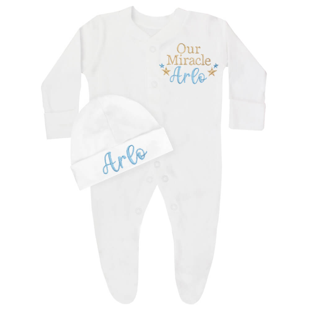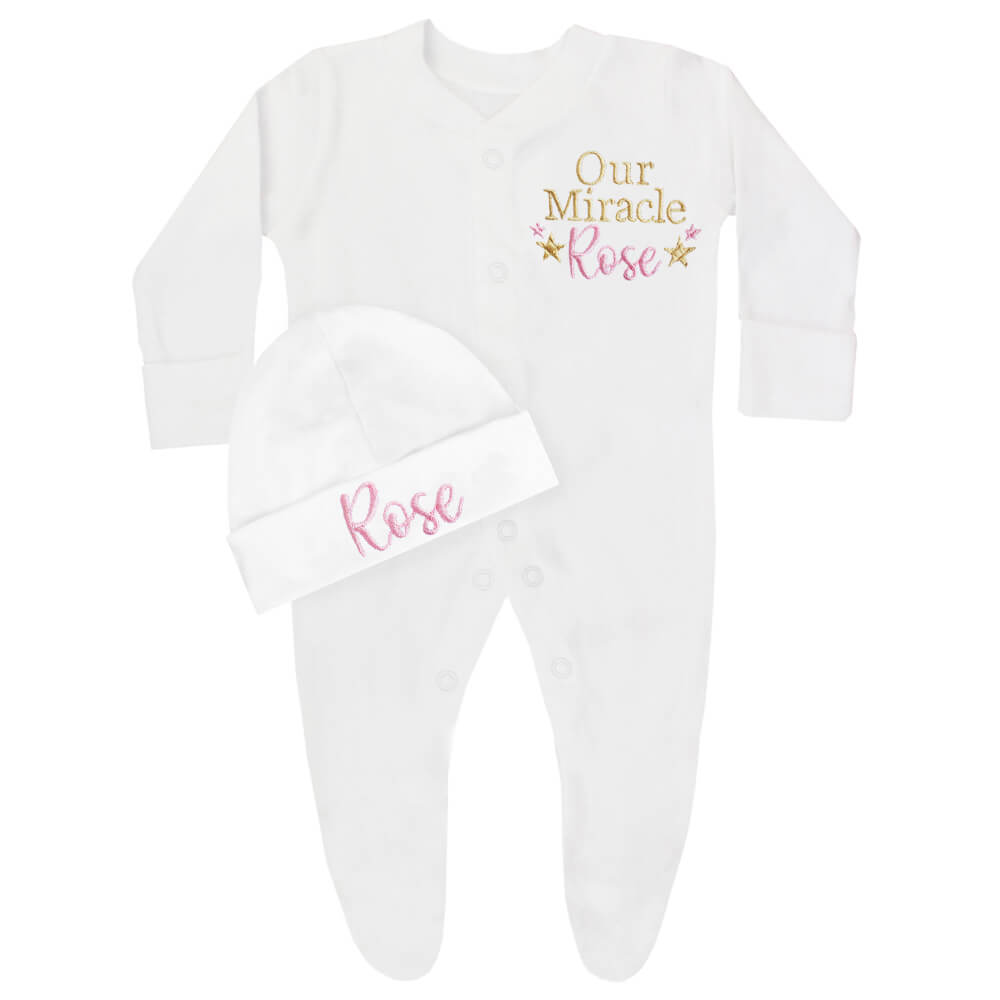 • High Quality Embroidered Name and ‘Our Miracle Baby’ Design