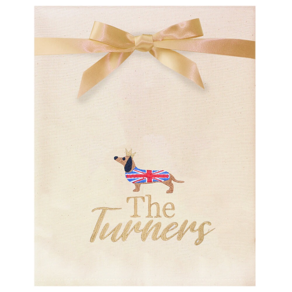 Perfect for your Coronation afternoon tea! Our patriotic Sausage Dog tea towel can be personalised with a name of your choice, a lovely keepsake to commemorate the King’s upcoming Coronation. A great gift idea to give to the host if you are attending someone else’s tea party!