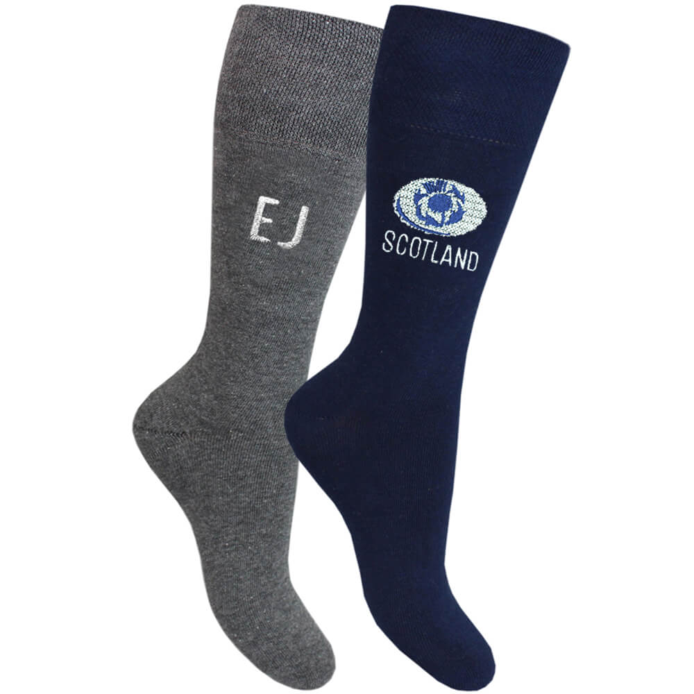 The Custom Scotland Embroidered Rugby Ball Socks are a treat for rugby fans! This set includes two pairs of honeycomb top socks, designed for comfort. A great gift for any rugby enthusiast who loves to stay cosy and show their support for Scotland!