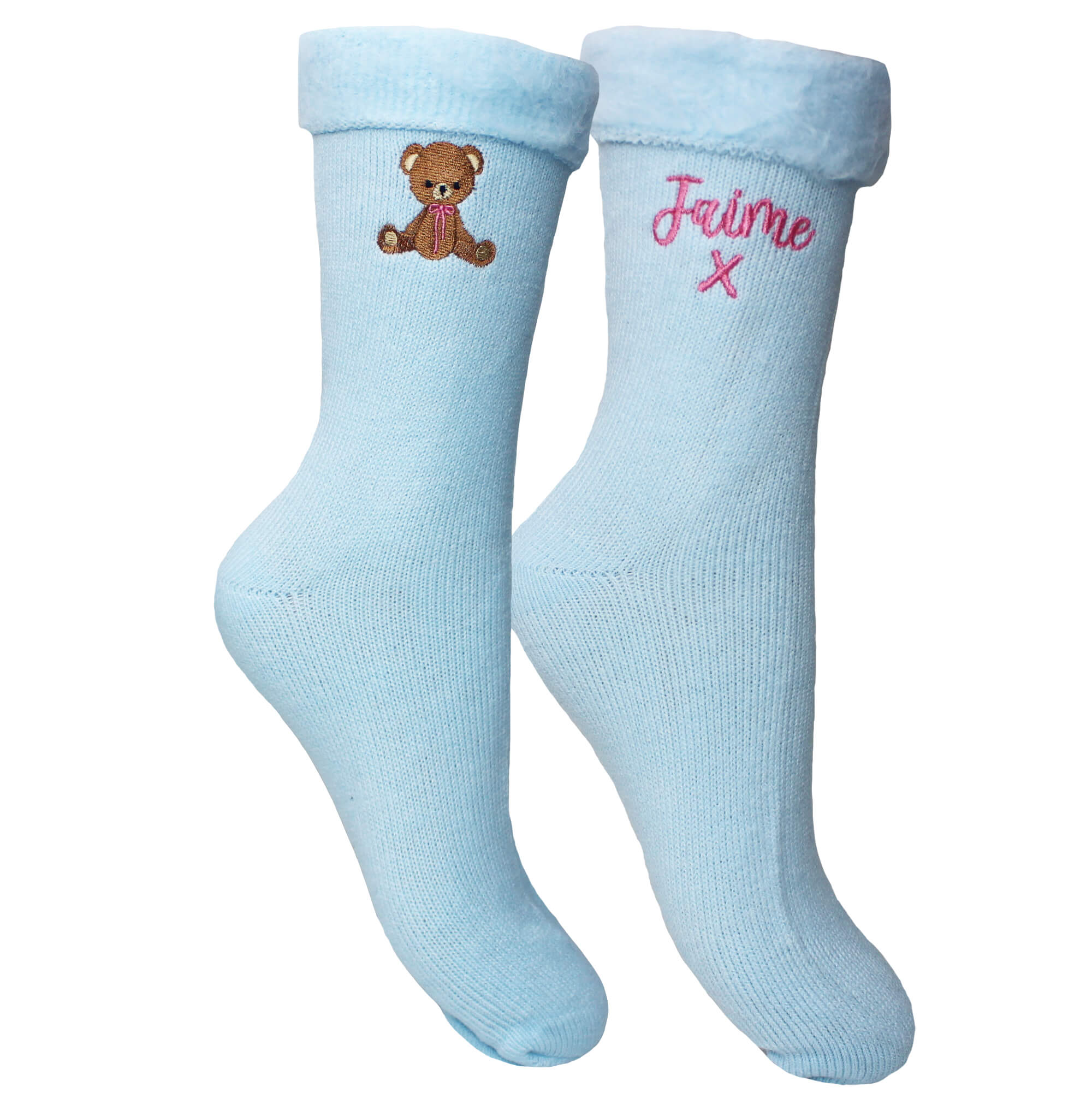 Show loved ones how much your care with these ladies personalised and teddy bear embroidered fluffy bed socks!