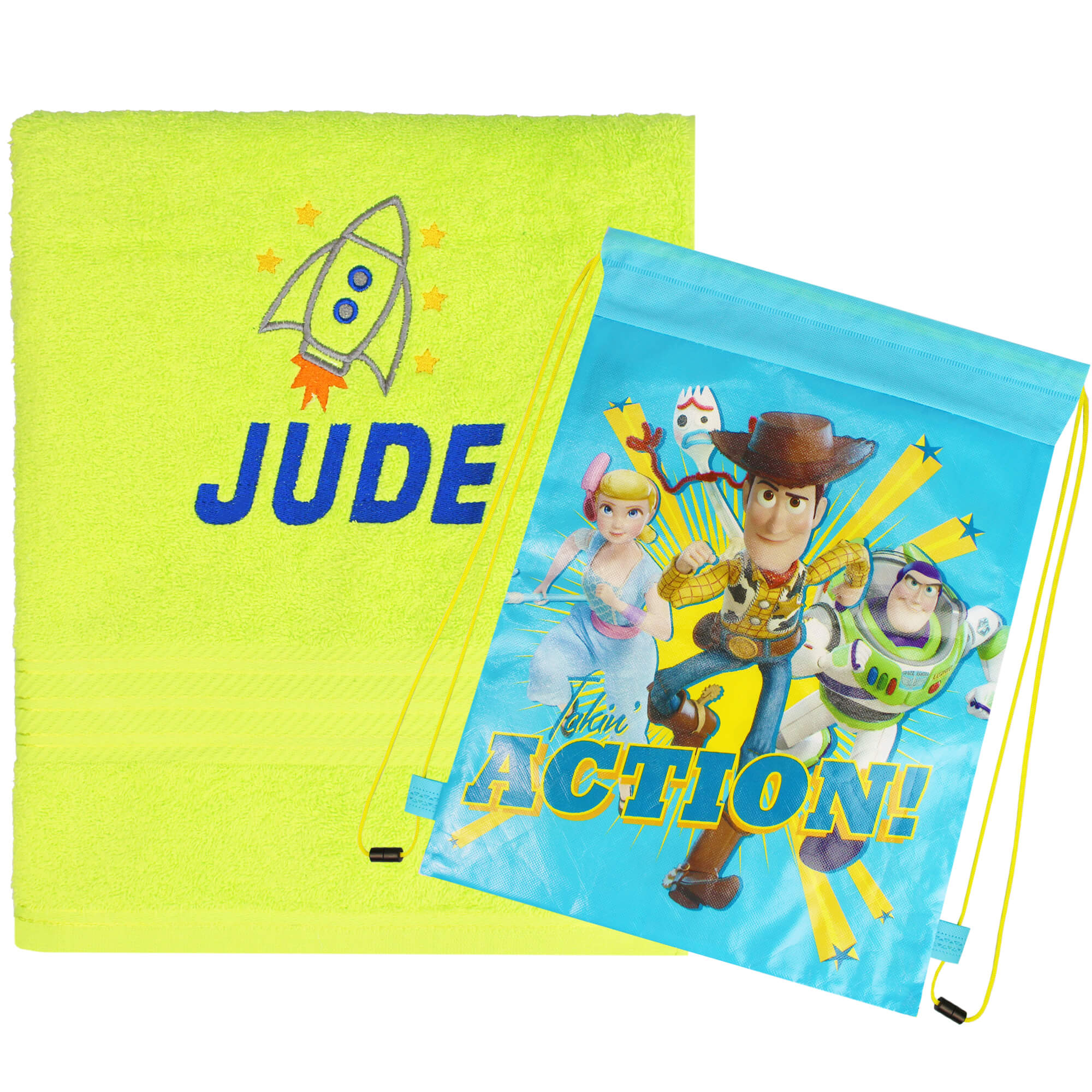 Personalised Toy Story School Swimming Bag & Lime Rocket Bath Towel Set