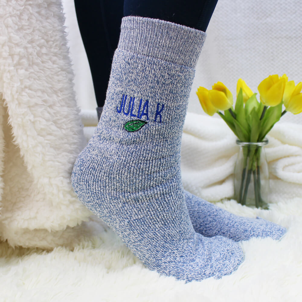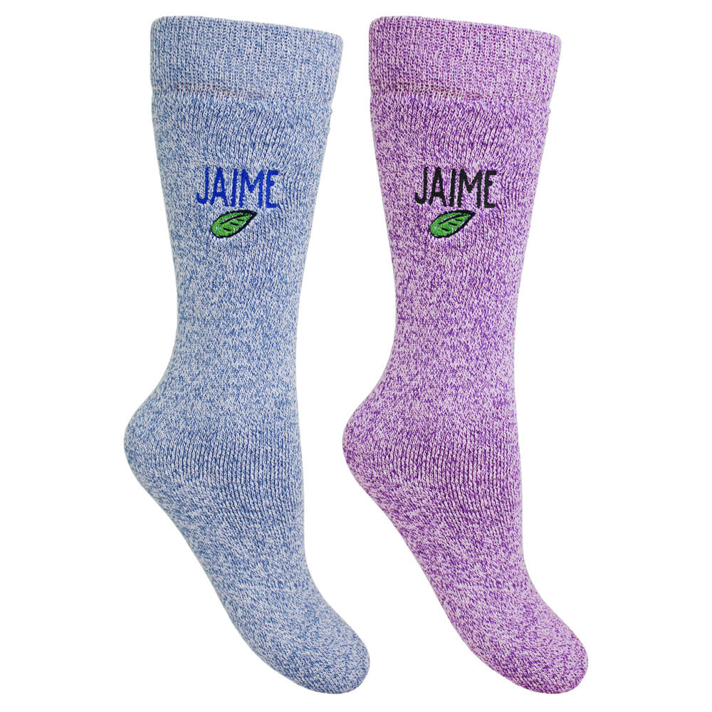 Perfect liners for your walking boots or wellies! Super soft and cotton rich, a great gift for her! One purple pair and one blue pair, both personalised.