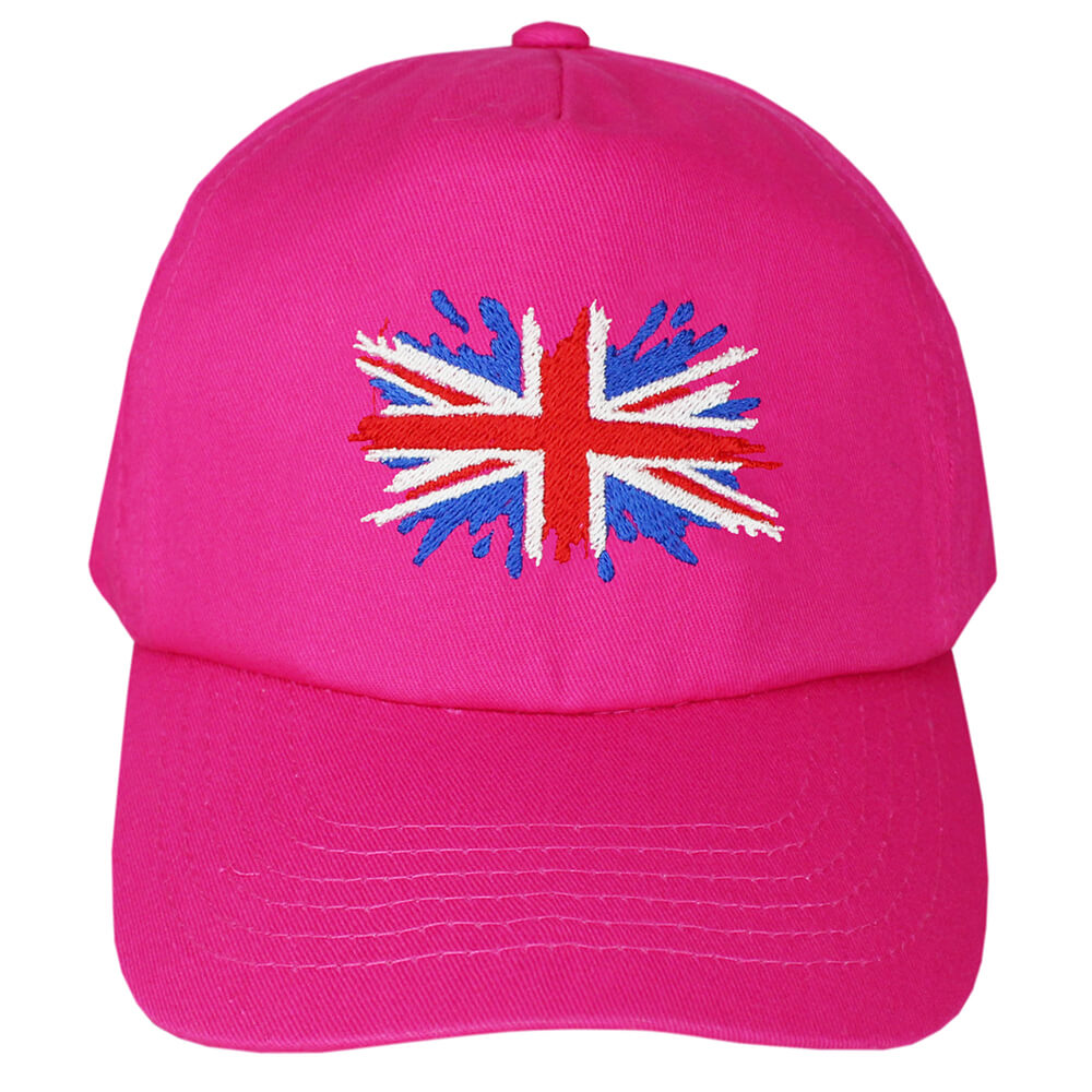 Wear your Union Jack baseball cap with pride! This embroidered patriotic sun hat in pink is perfect for sunny days!