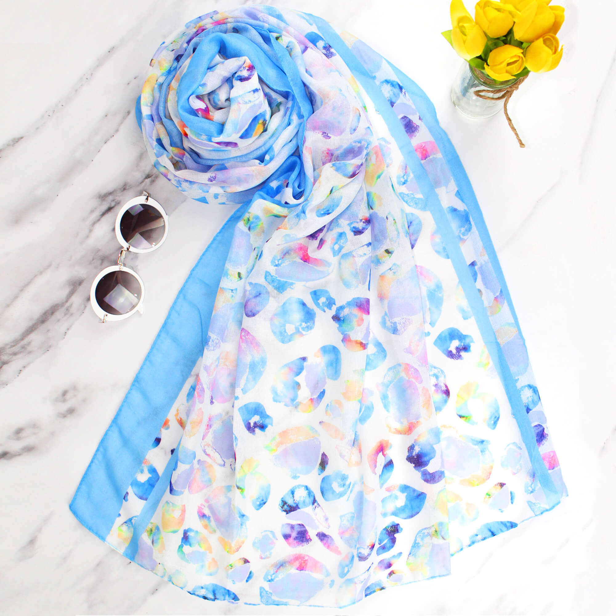 Super Soft Blue Watercolour Petals Scarf