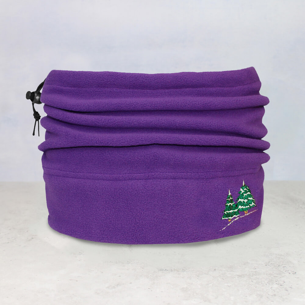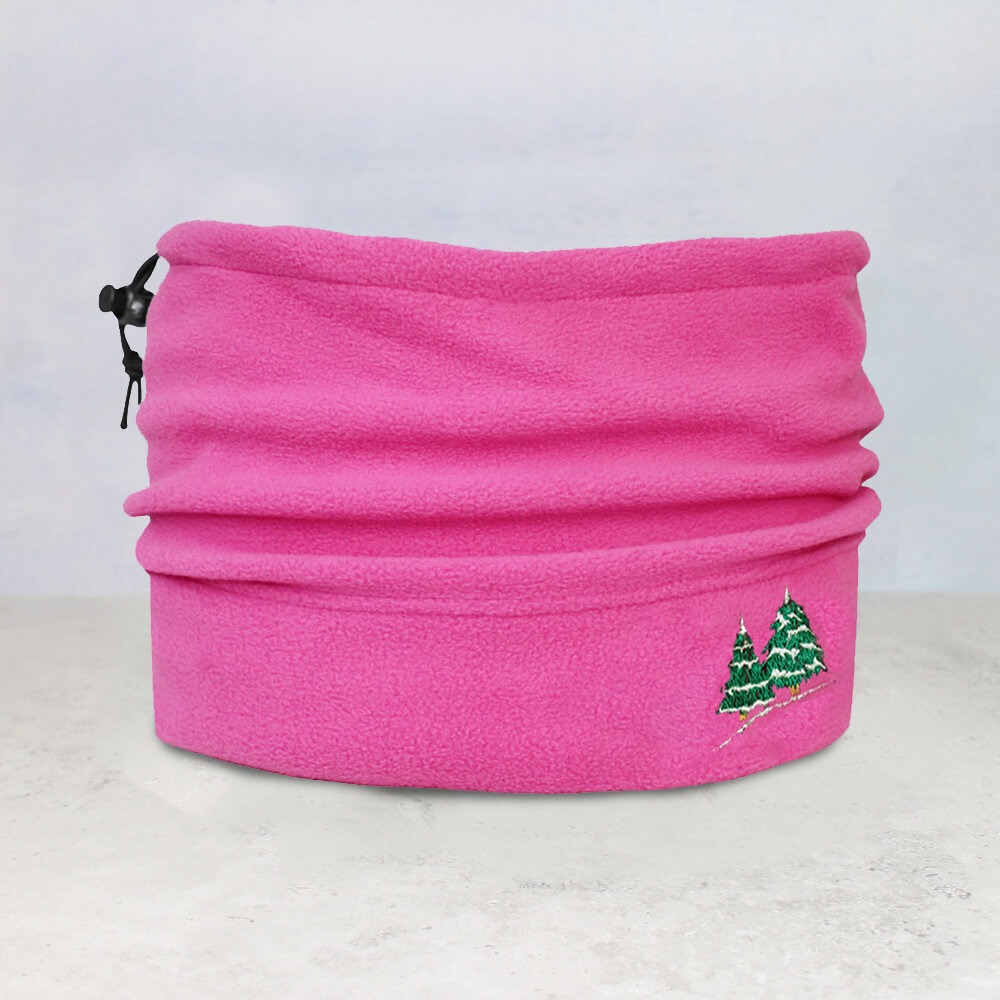 Our women’s toggle thermal snood features a lovely embroidered motif of two alpine snowy trees on a slope, the snow on the trees is embroidered in metallic thread for extra sparkle. Look smart and keep cosy this winter in super soft thermal fleece, this fully adjustable snood is perfect for hiking, walking the dog or climbing a mountain! Choose from three fashionable colours – pink, purple or maroon red, we think it’s difficult to pick just one!