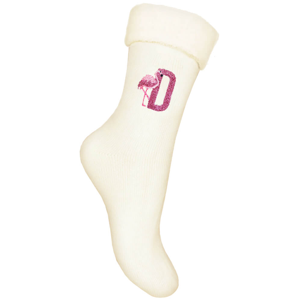 Add a touch of sparkle to bedtime with our Personalised Initial Flamingo Bed Socks. These luxurious cream bed socks feature an embroidered initial in shimmering sparkle thread, making them a unique and thoughtful gift. Crafted for ultimate comfort, they keep your feet warm and cosy all night long. The charming flamingo design adds a fun and whimsical touch. Perfect for relaxing at home or as a special gift for someone you love, these bed socks combine warmth, style, and a personal touch that will brighten up any evening!