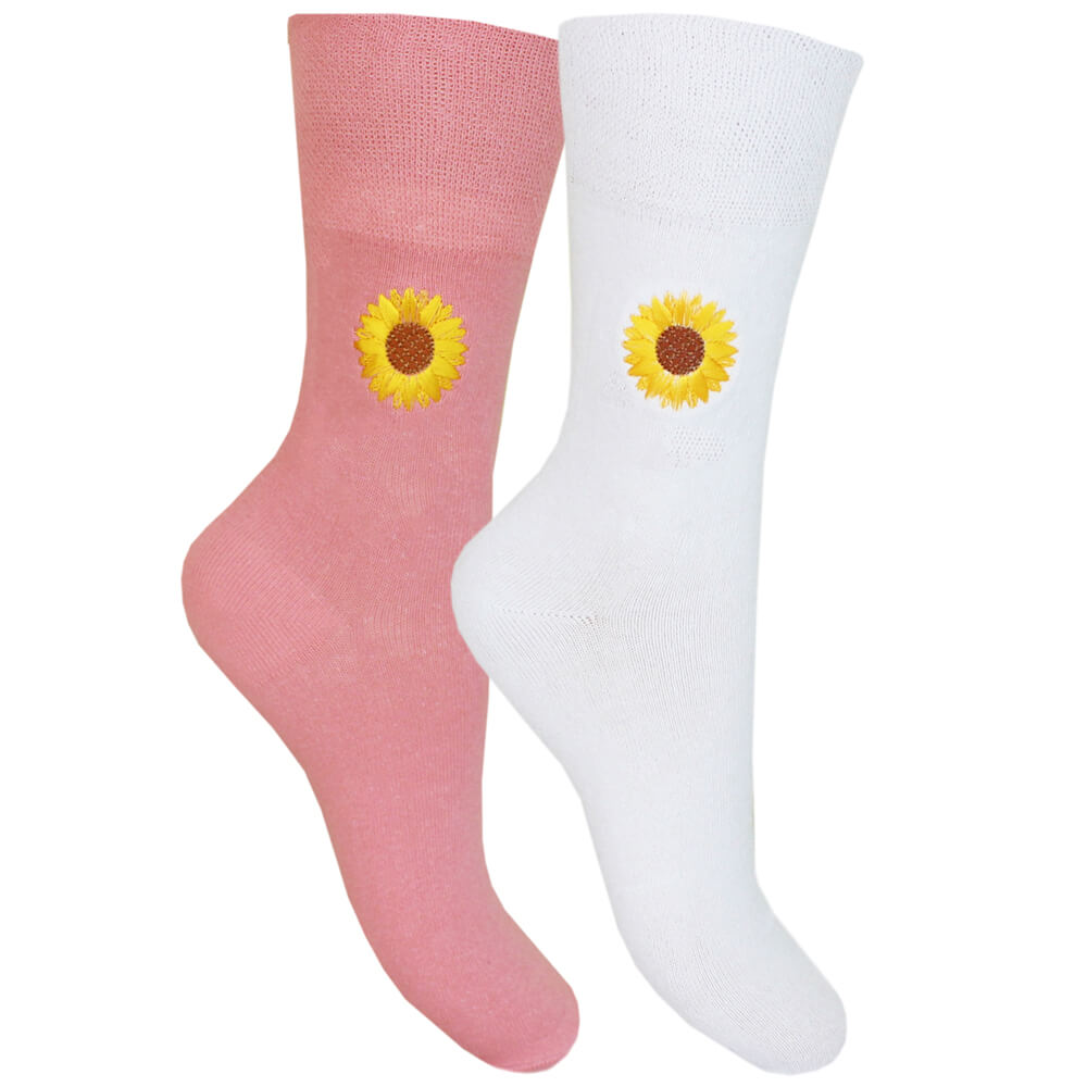 Featuring a beautiful satin stitched sunflower, these lightweight honeycomb top socks are perfect for keeping comfy in the warmer months!
